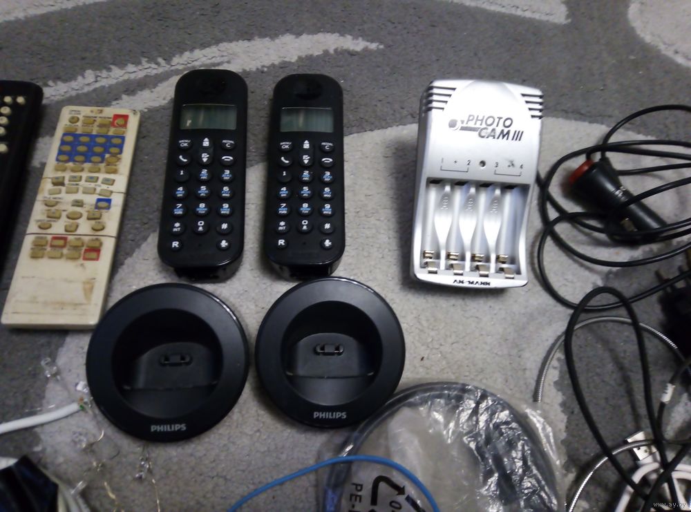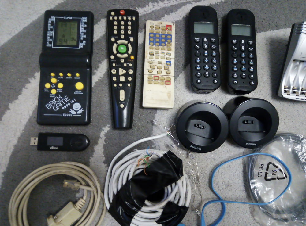 Тетрис рабочий, mp-3 плеер Ritmix RF-3200 на 4 Гб (не держит аккумулятор, утеряны накладки на кнопки громкости, подключается к ПК, можно использовать как флешку), радиотелефон Philips базы, трубки рабочие, повреждены дисплеи, только подсветка работает.