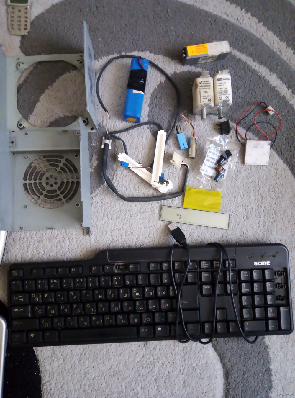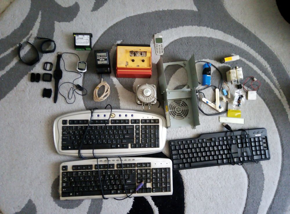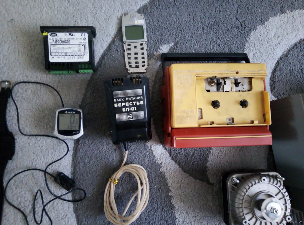 Блок питания от проигрывателя Берестье рабочий, сам проигрыватель не работаеть, смарт-часы Sony Ericsson включаются, но слабая батарея, в велокомпьютере установлена новая батарейка, включается, дальше не проверял. Электродвигатель вентилятора рабочий, но нужно менять смазку внутри, туго крутится.