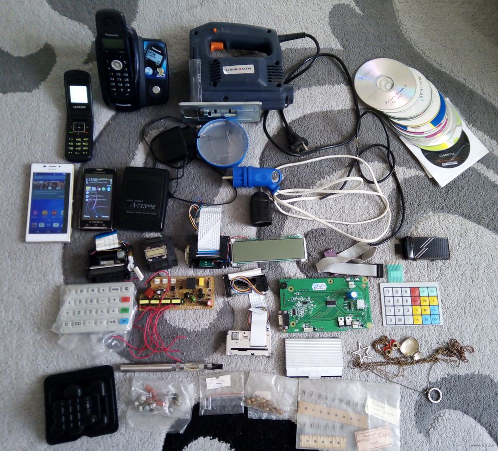 Лобзик вроде рабочий, механизм работает при включении в сеть, резать не пробовал, телефоны включаются, резисторы новые, не паянные, блок питания подсветки рабочий. Остальное не проверял.