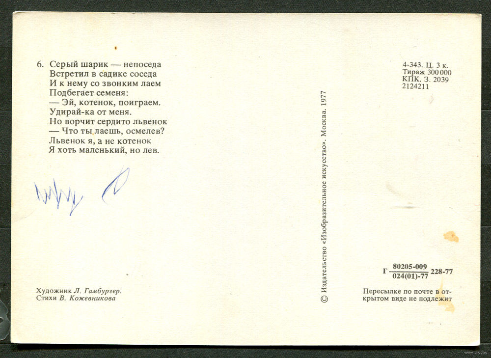 Щенок и львенок. Худ. Л. Гамбургер. 1977