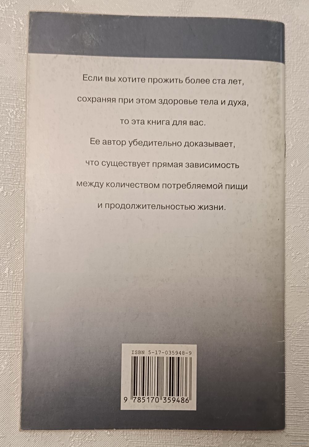 Если вы хотите прожить более ста лет, сохраняя при этом здоровье тела и духа, то эта книга для вас. Ее автор убедительно доказывает, что существует прямая зависимость между количеством потребляемой пищи и продолжительностью жизни. Будет интересна широкому кругу читателей.