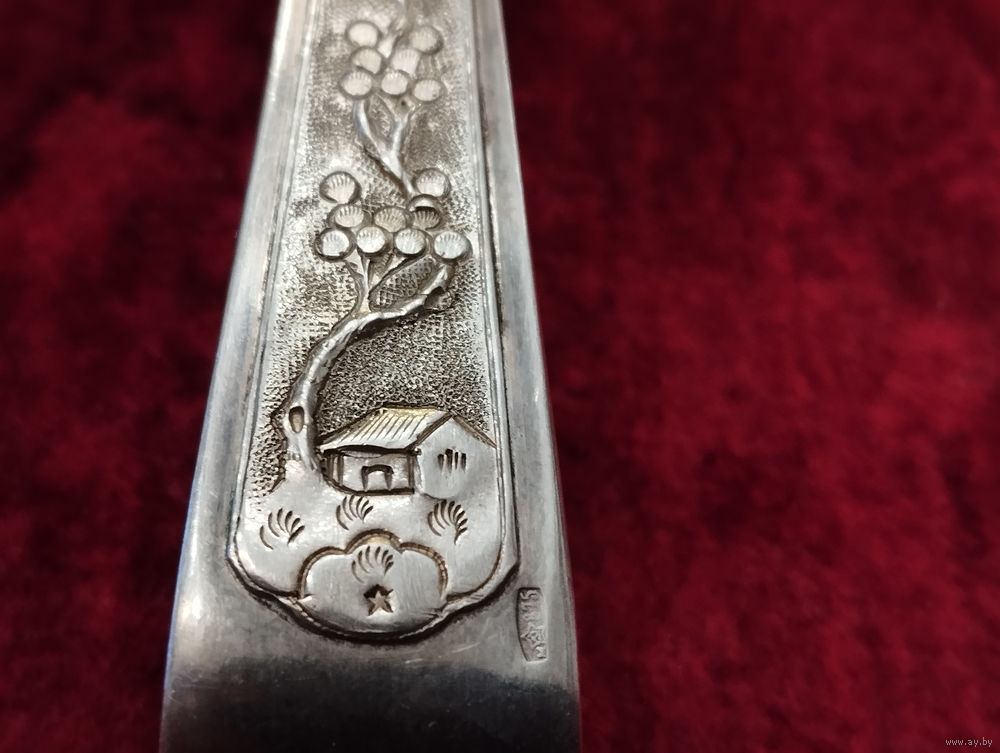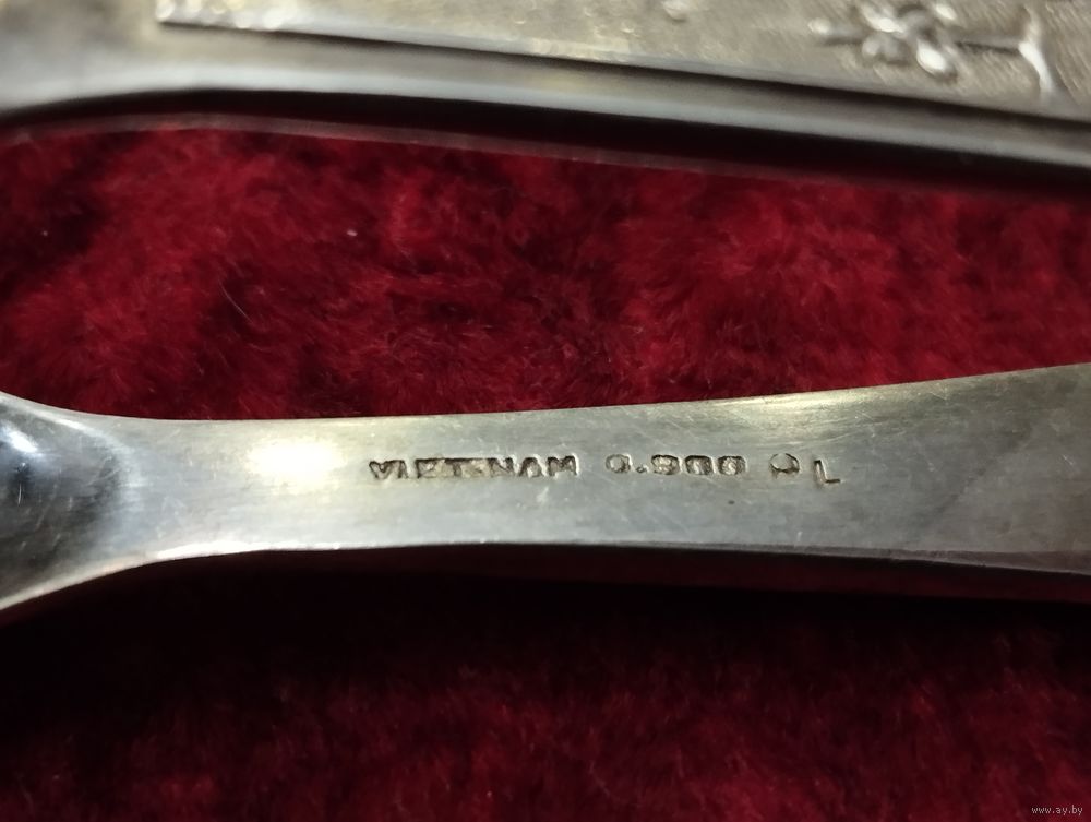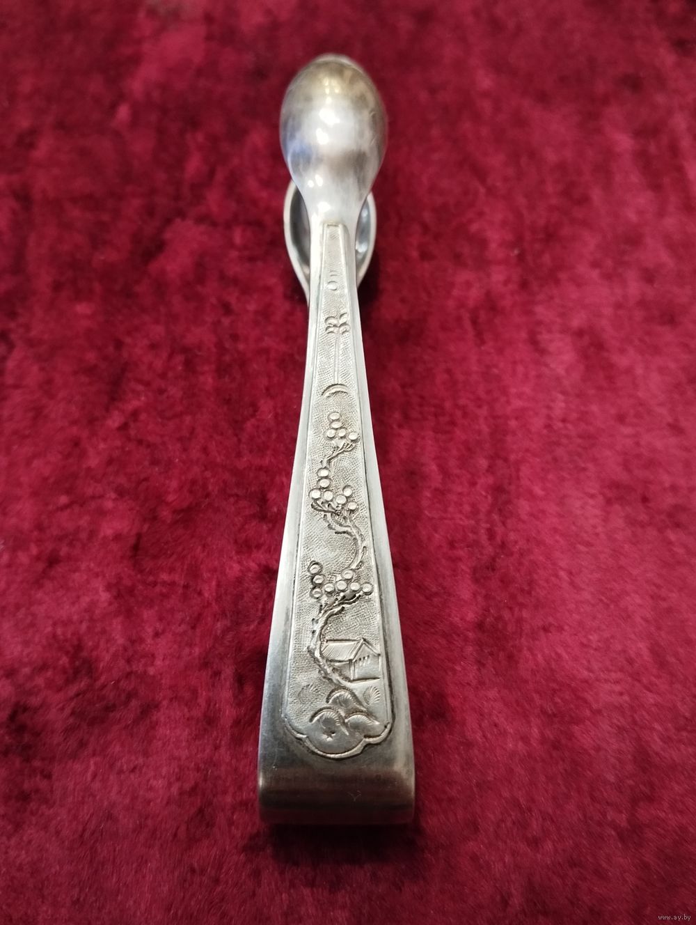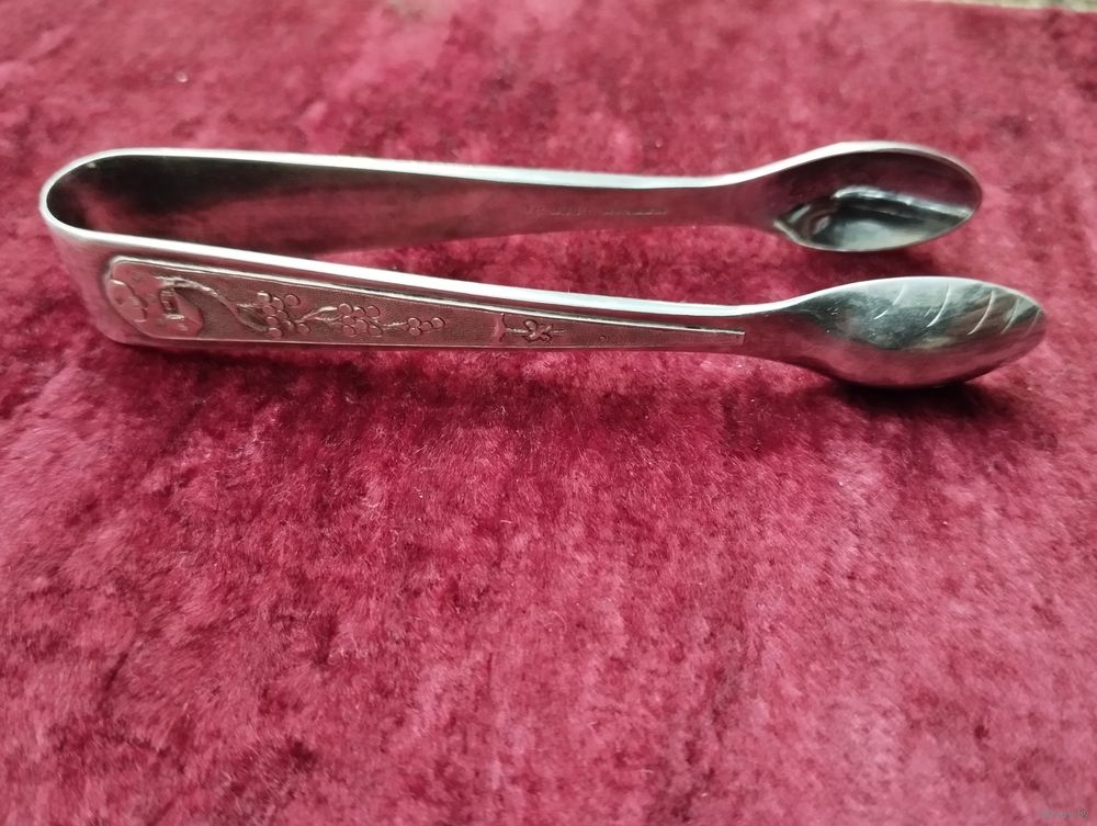 Щипцы для сахара, серебро. Советский Вьетнам. Двойное клеймение 900 и 875 проба.