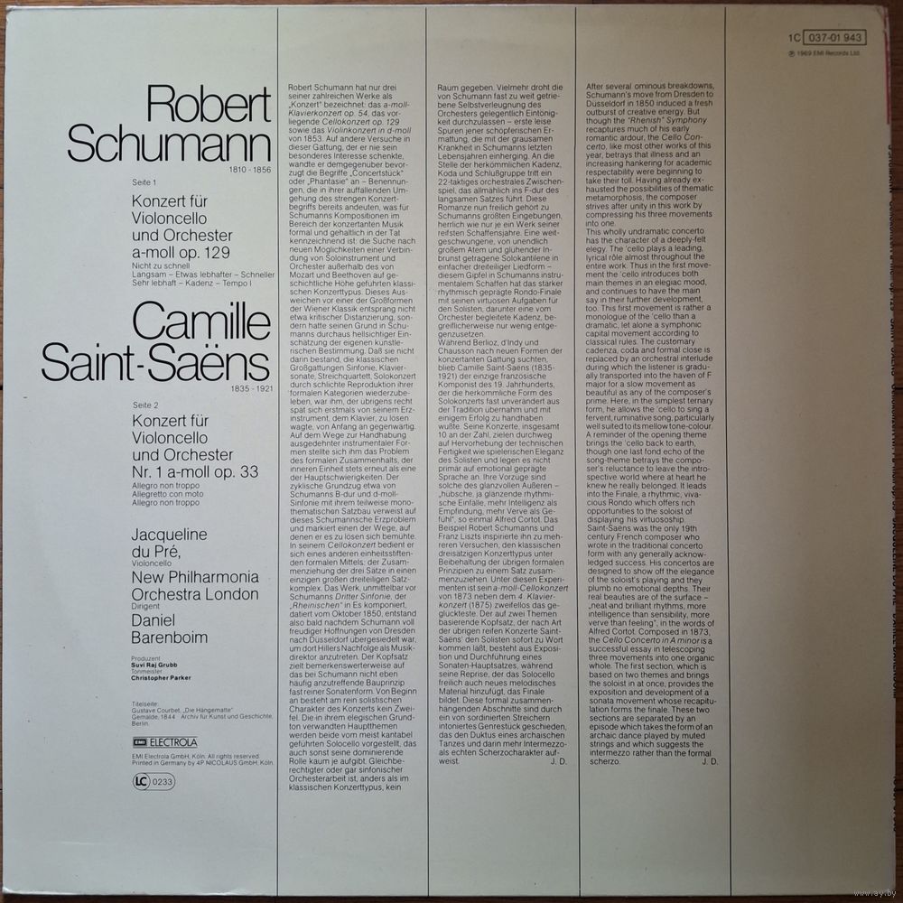 Schumann, Saint-Saens - Jacqueline Du Pre. Cello Concerto In A Minor / Cello Concerto No. 1 In A Minor.
