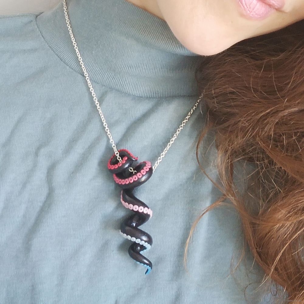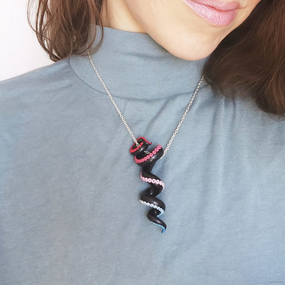 Авторская работа из полимерной глины на посеребряной цепочке с удлинителем.