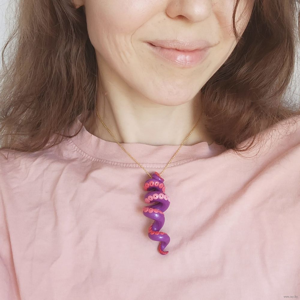 Авторская работа из полимерной глины на позолоченной цепочке с удлинителем.
