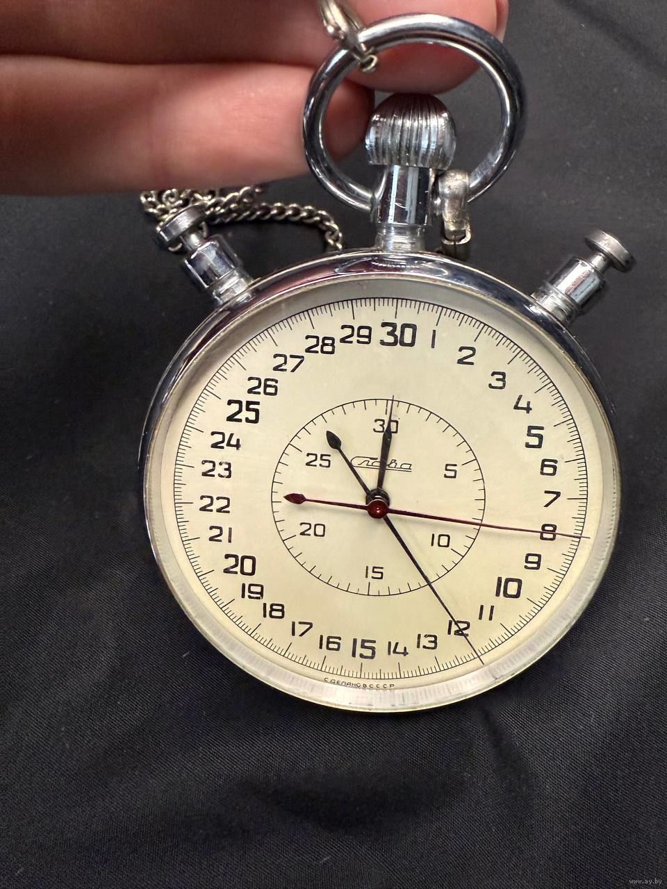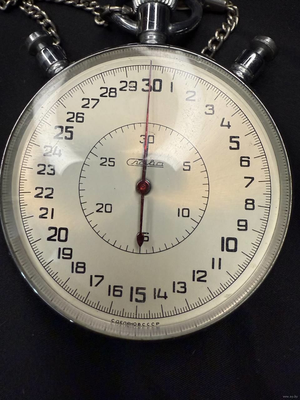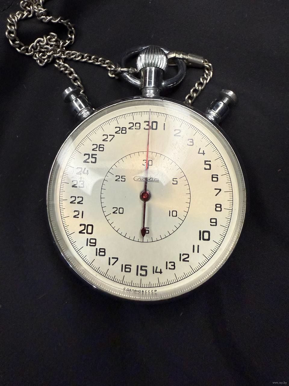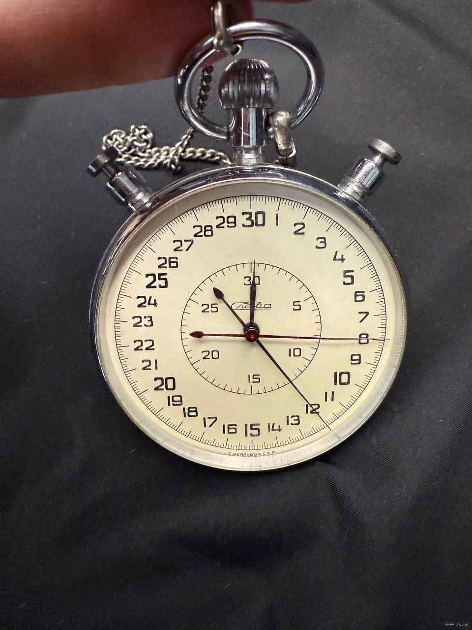 Это механический секундомер «Слава» СДСпр-1-2, произведенный в СССР