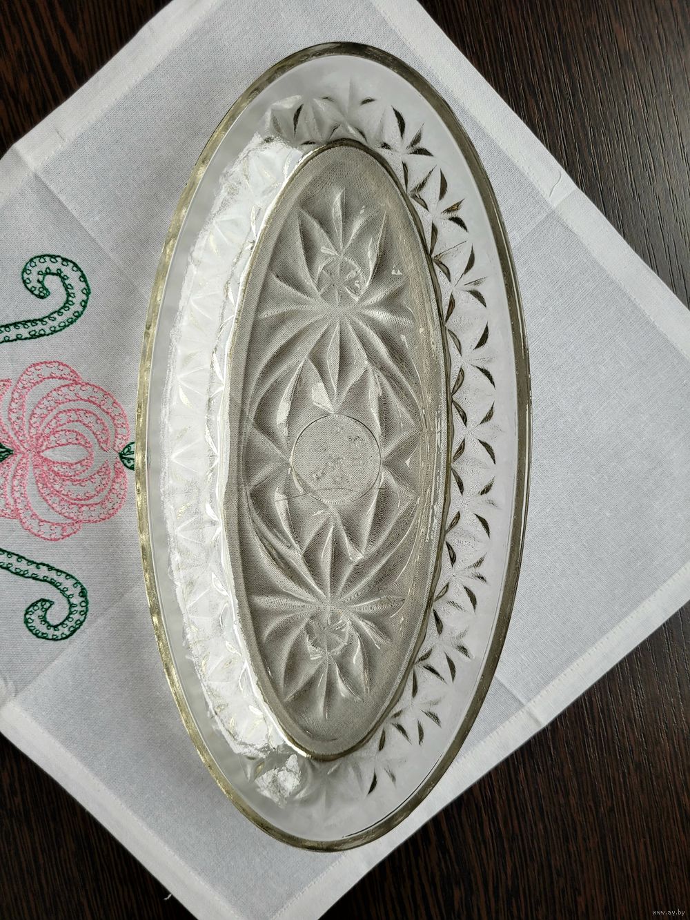 Селёдочница, формованное дымчатое стекло, размер 15,5×12 см. Стекольный завод "Октябрь", период СССР. Клеймо СЗО.
