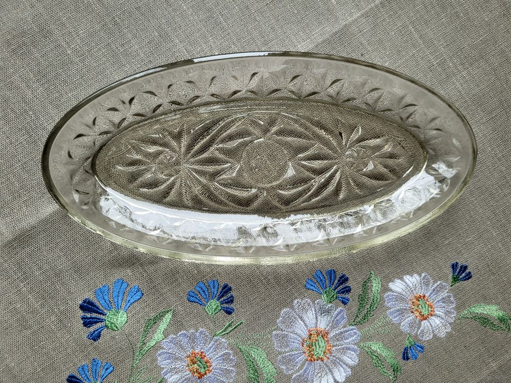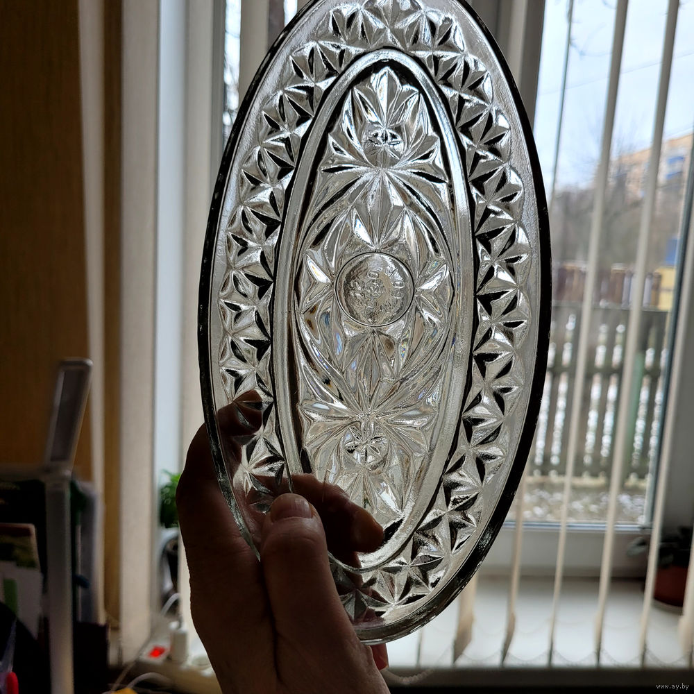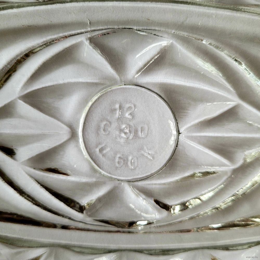 Селёдочница, формованное дымчатое стекло, размер 15,5×12 см. Стекольный завод "Октябрь", период СССР. Клеймо СЗО.