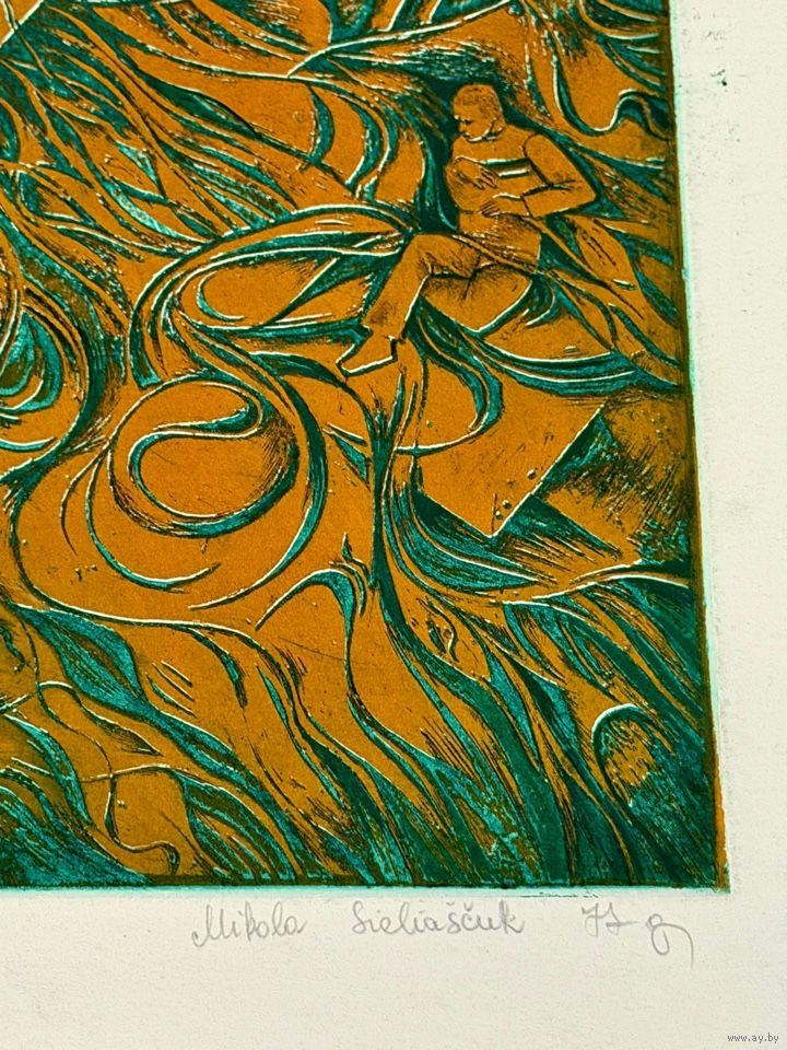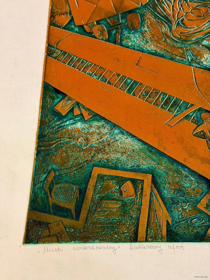 Селещук Н.М "Минский авиаремонтный", 1977г. Цветной офорт. Размер с рамой 72х63 см.
