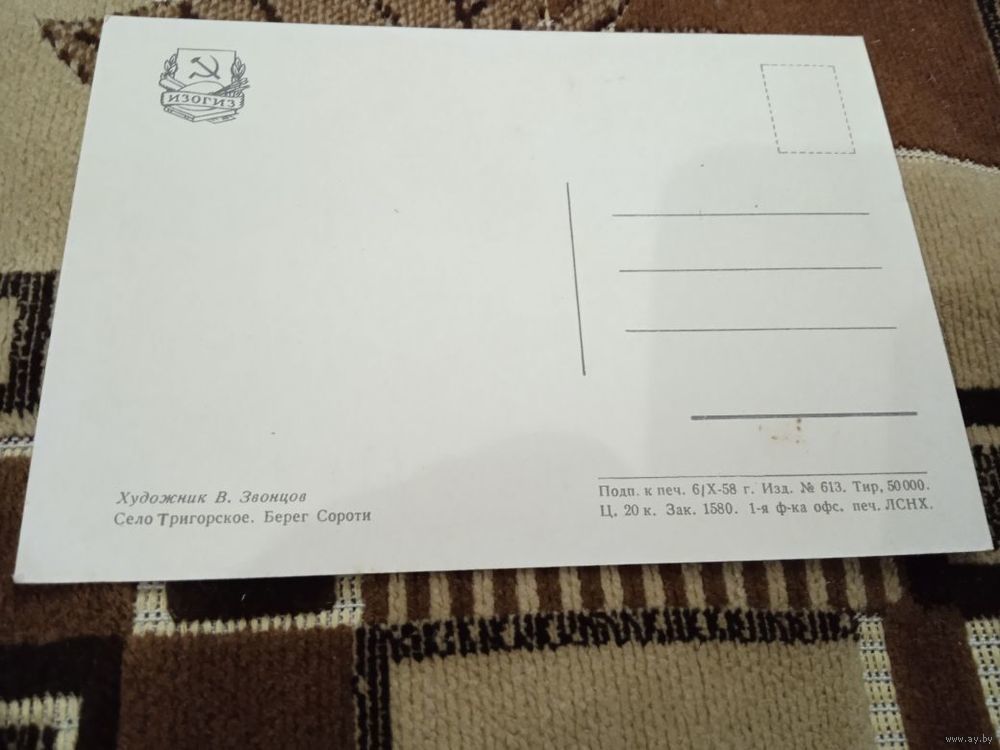 СЕЛО ТРИГОРСКОЕ.БЕРЕГ СОРОТИ.худ ЗВОНЦОВ.В 1958 Г.ТИРАЖ 50 000