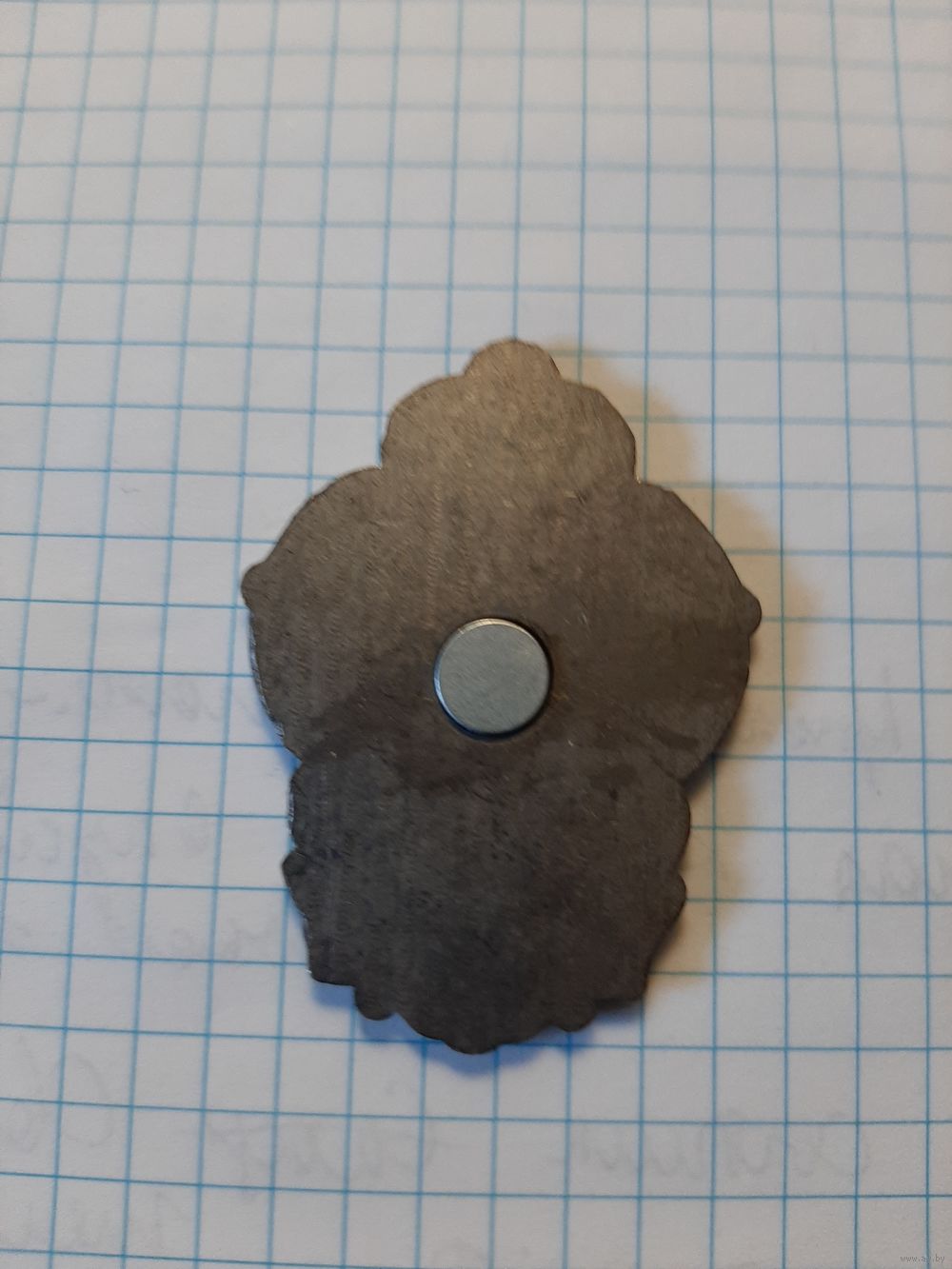 Тяжёлый метал, эмали. По сути, сделан как магнит на холодильник.
