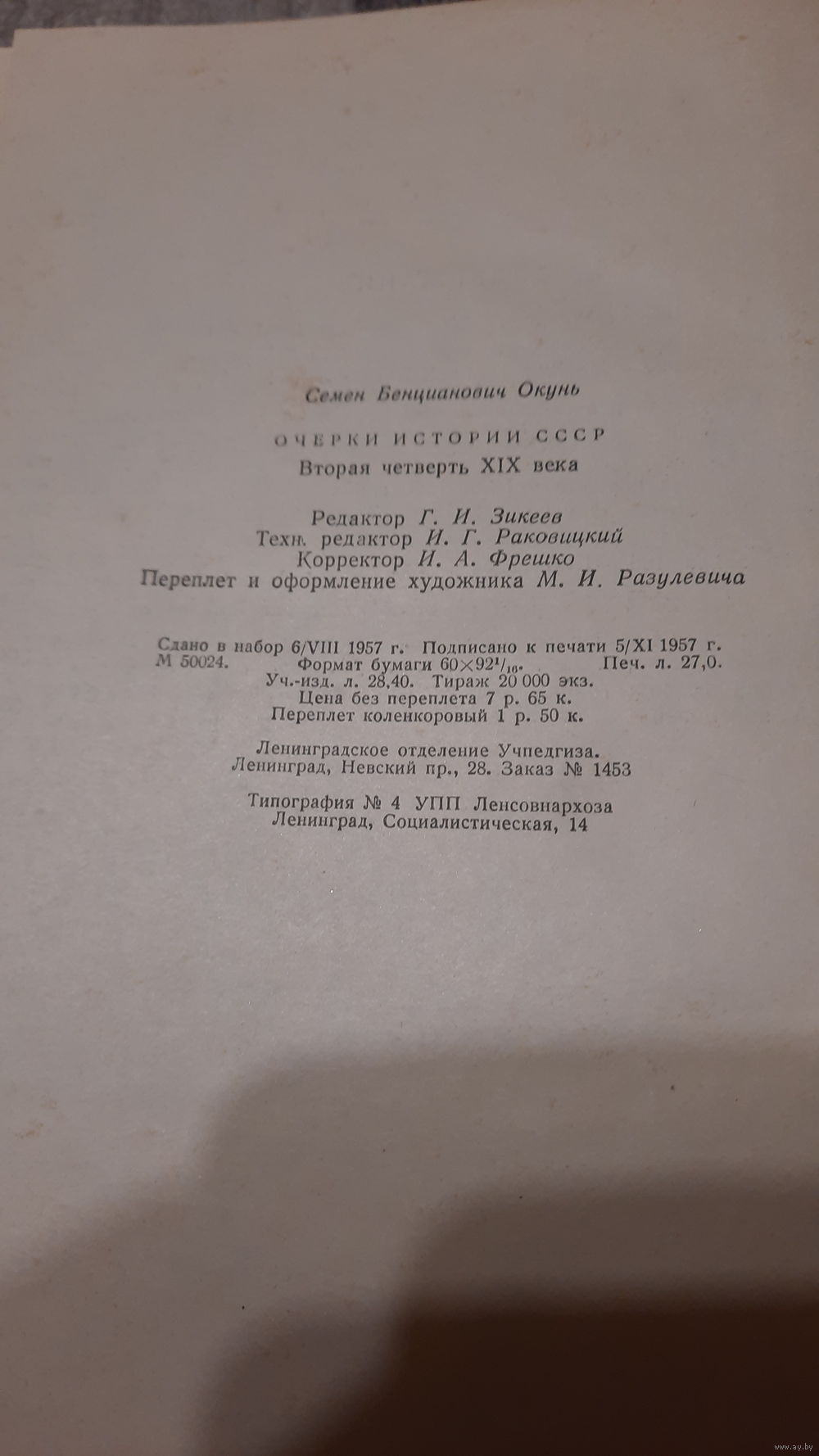 Семен Бенцианович Окунь, Очерки истории СССР, вторая четверть XIX века, Ленинград, 1957г.