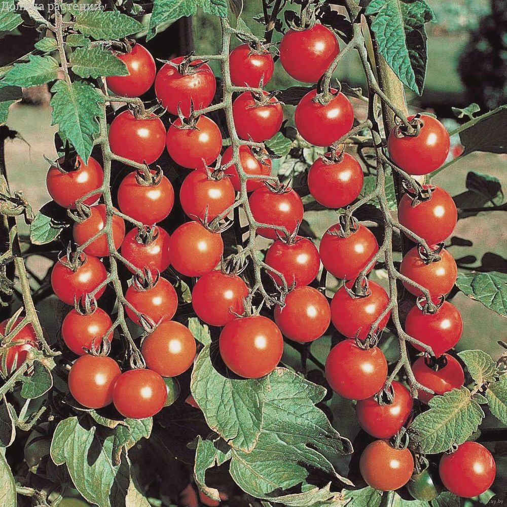 Томат Сладкое дерево. Высота 1.80 м. Ультраранний. Плоды томата имеют массу 10-15 граммов и округлую форму. В одной кисти может находиться до 30 плодов. Мякоть плода плотная, а цвет мякоти ярко-красный. Вкус сладкий. Плодоносит долго, -в течение всего лета у вас будут свежие маленькие томатики.