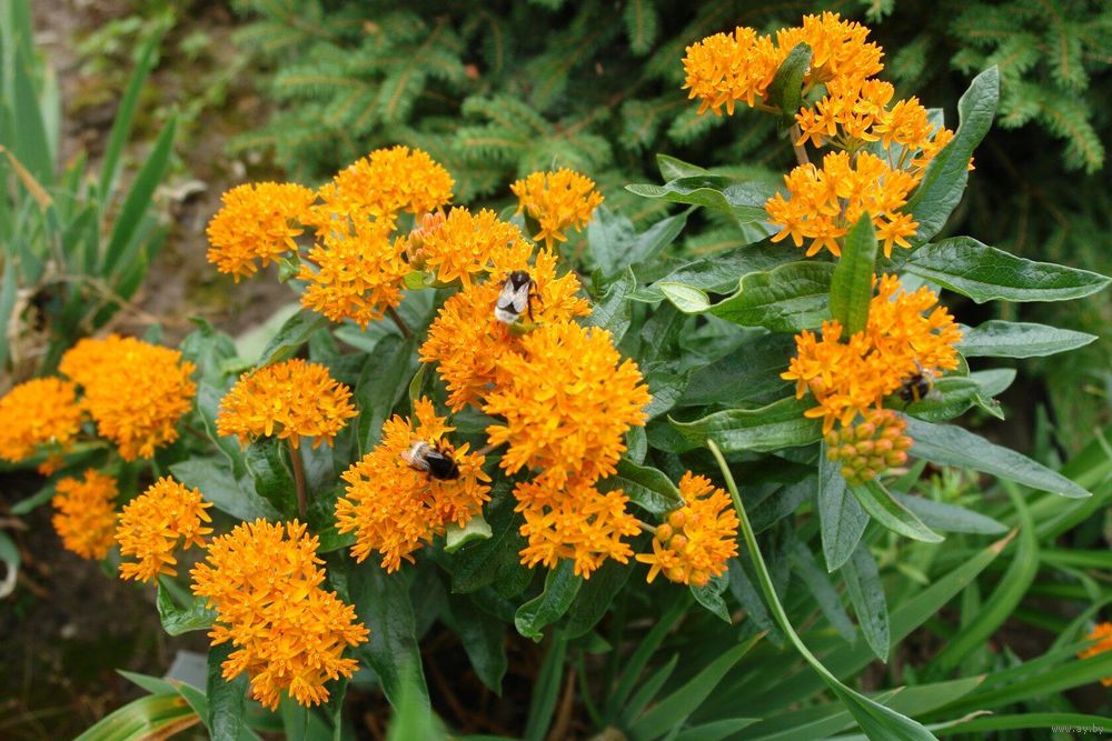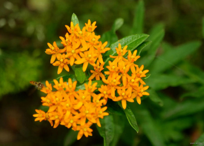 Ваточник клубненосный «Золотинка» (Asclepias tuberosa) — многолетнее декоративное растение высотой 60–70 см с яркими оранжевыми соцветиями-зонтиками, цветущее с середины лета до осени. Сорт отличается неприхотливостью, зимостойкостью приятным ароматом, привлекая пчел и бабочек.