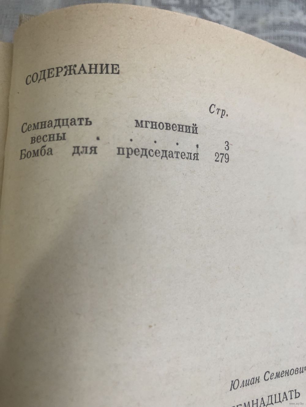 В книгу вошли романы `Семнадцать мгновений весны` и `Бомба для председателя` связанные общим героем - советским разведчиком Исаевым. `Семнадцать мгновений весны` - 1945 год. Берлин. Советский разведчик Максим Исаев под видом штандартенфюрера СС Штирлица работает в политической разведке фашистской Германии. В феврале 1945 года он получает из Центра задание собрать информацию о переговорах немцев и союзников. Положение осложняется тем, что деятельностью Штирлица начинает интересоваться Гестапо. `Бомба для председателя` - война давно окончена, однако возрожденные вопреки решению Потсдамской конференции в начале 50-х годов монополистические концерны продолжают развиваться. Их деятельность оказывается тесно связанной с неонацистскими тенденциями в Западной Германии. Легендарный разведчик Штирлиц, ныне профессор Максим Максимович Исаев, возвращается в Берлин после внезапного исчезновения своего аспиранта, занимающегося исследованием нацистского прошлого владельца одного из концернов, чтобы разоблачить преступников и завершить начатое.
