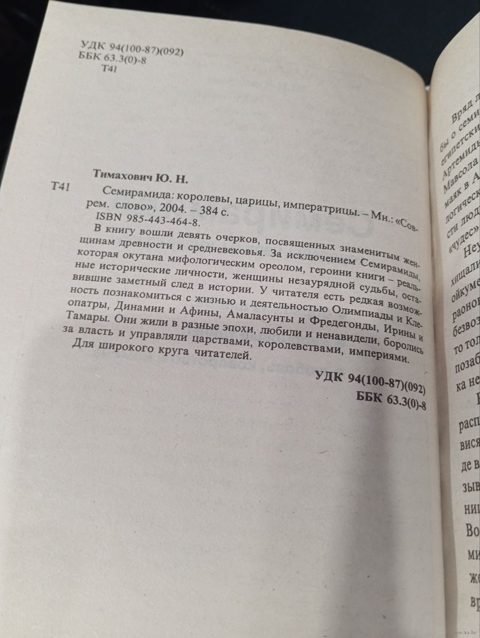 1. Ю. Н. Тимахович «Семирамида: королевы, царицы, императрицы» (Современное слово, 2004, 384 с., твёрдый переплёт).