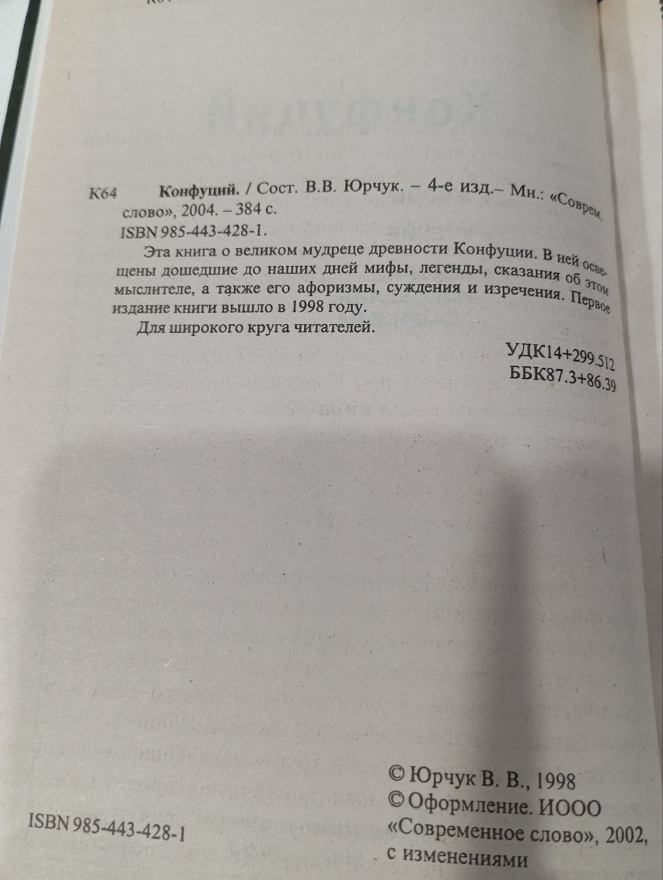 3. «Конфуций» / сост. В. В. Юрчук (Современное слово, 2004, 384 с.).