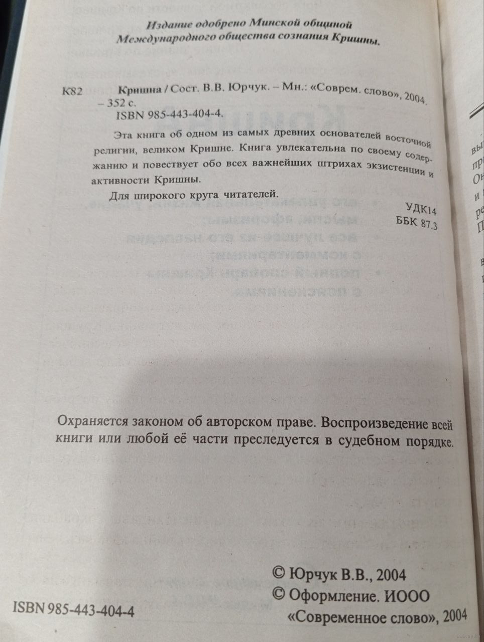 5. «Кришна» / сост. В. В. Юрчук (Современное слово, 2004, 352 с.).