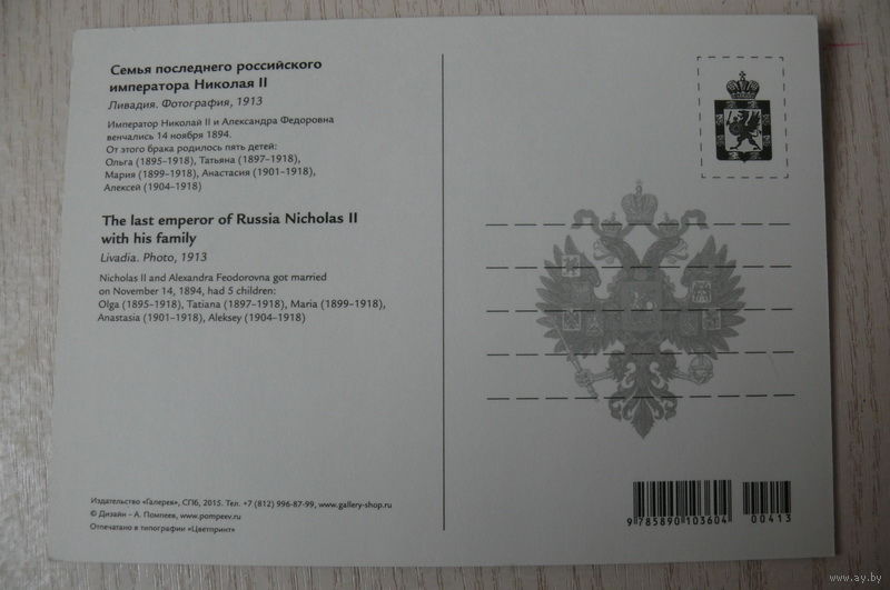 Семья последнего российского императора Николая II; 2015, чистая, изд. Санкт-Петербург.