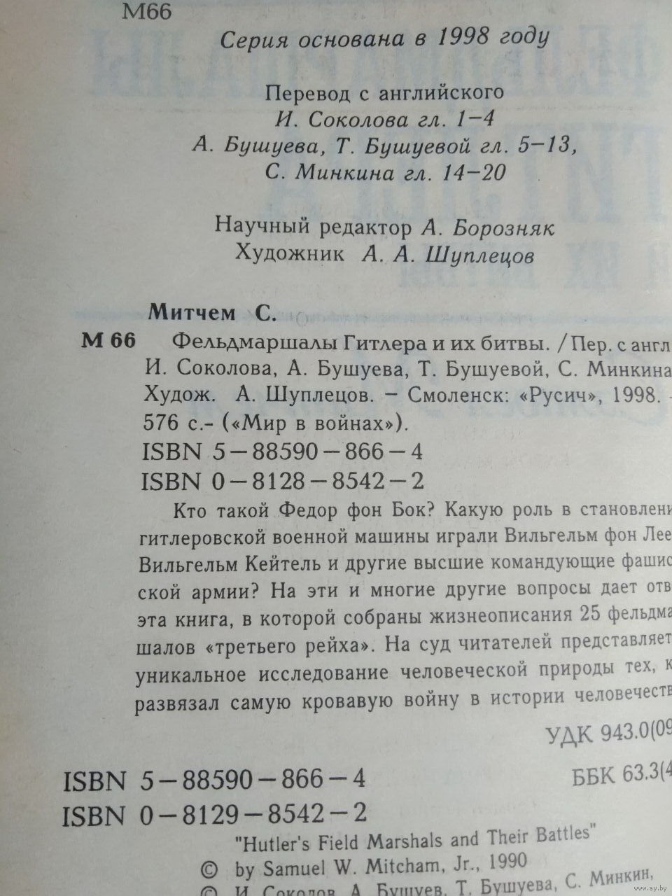 34. Состояние Отличное. Автор Митчем Сэмюель У.. Серия Мир в войнах. Издательство Русич. Год издания 1998. Страниц 576. Переплет Твердый переплет.