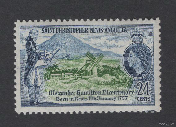 Сент Кристофер-Невис-Ангилья 1957** 200-летие Александра Гамильтона одного из отцов-основателей США, Королева Елизавета II Mi#128