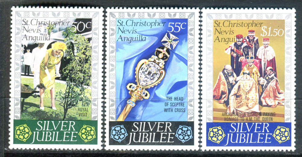 Сент-Кристофер, Невис и Ангилья - 1977г. - 25 лет регентства королевы Елизаветы II - 3 марки - полная серия, MNH [Mi 325-327]. #4-B6-Z-1-2