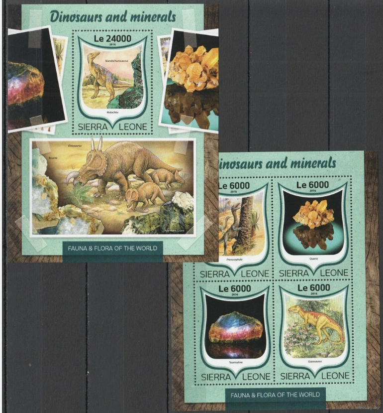 СЬЕРА ЛЕОНЕ 2016 СЕРИЯ Блоков динозавры рептилии фауна MNH