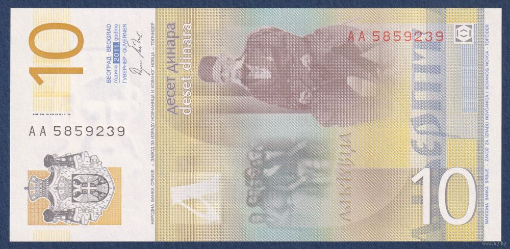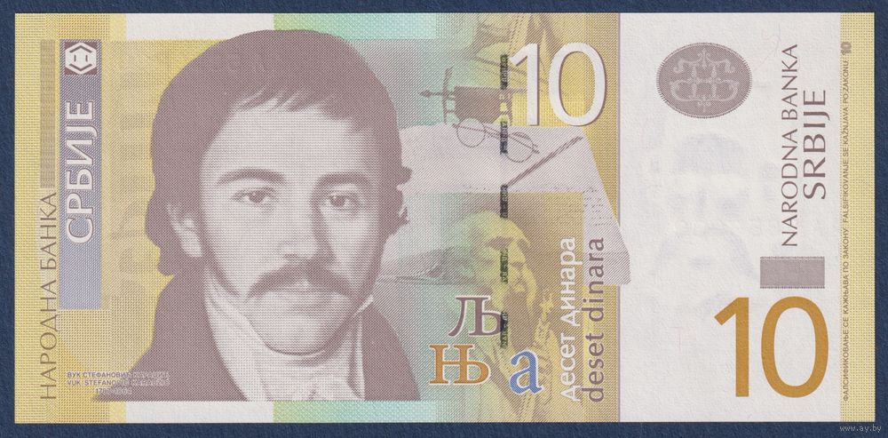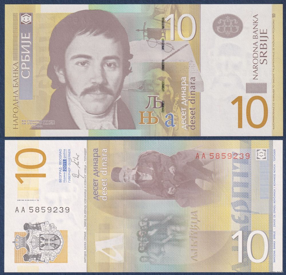 Сербия, 10 динаров 2011 г, P-54a (AA, лингвист Вук Караджич), UNC
