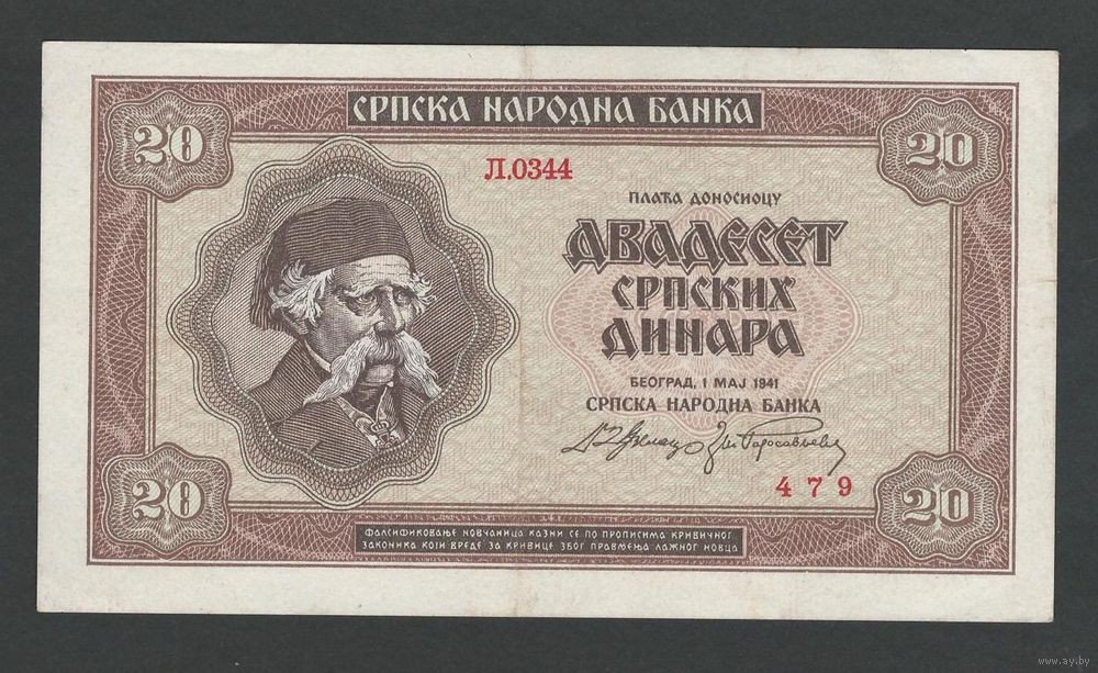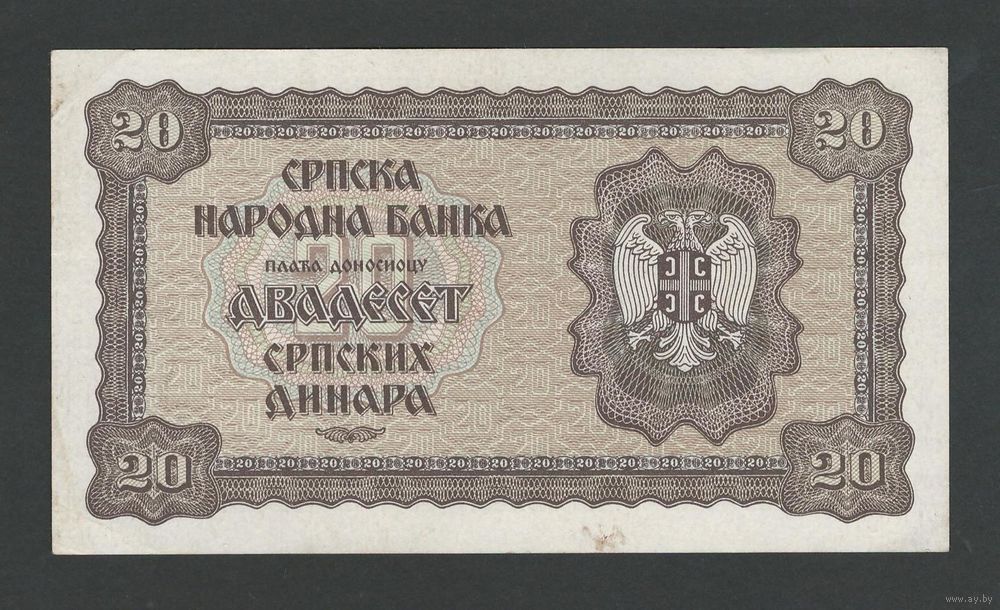 Сербия 20 динар 1941 года. Тип Р-25. Состояние XF+