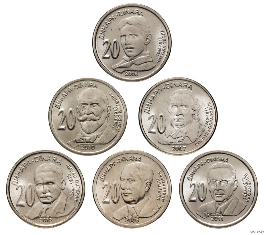 Сербия 20 динар 2006 - 2012 набор 6 монет UNC