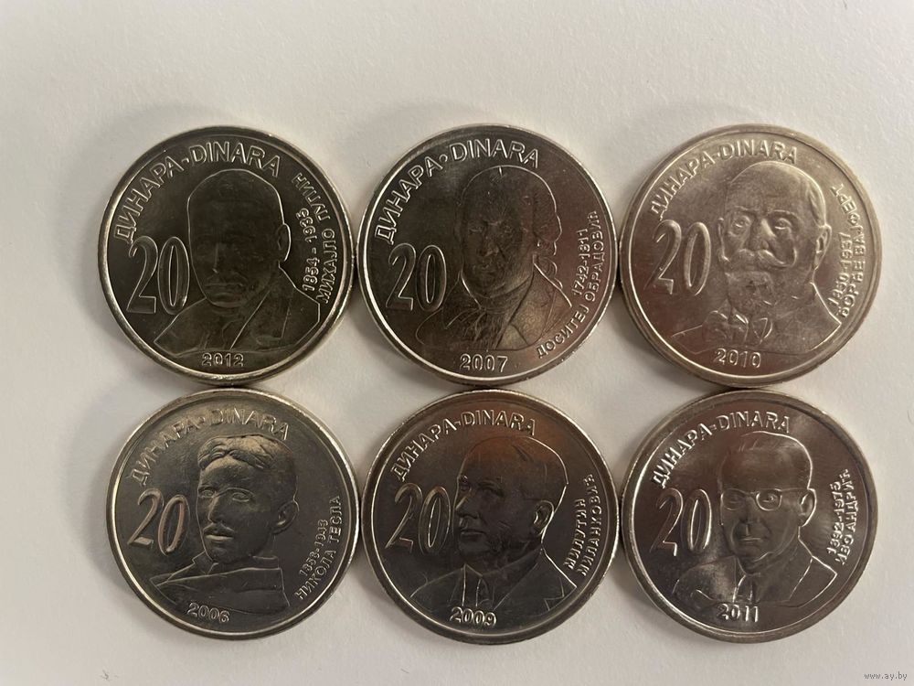 Сербия 20 динар 2006 - 2012 набор 6 монет (Выдающиеся личности) UNC