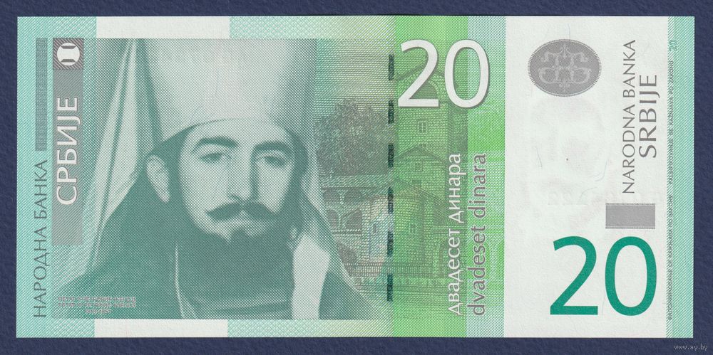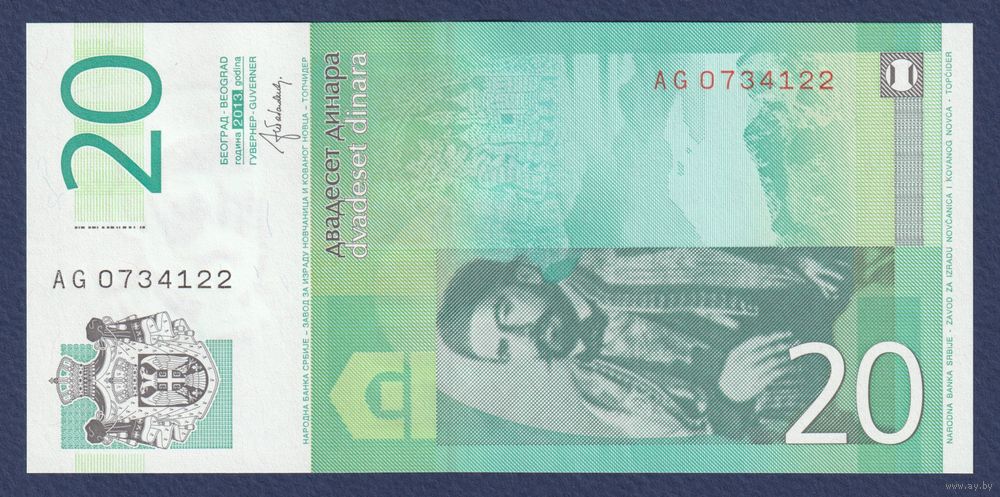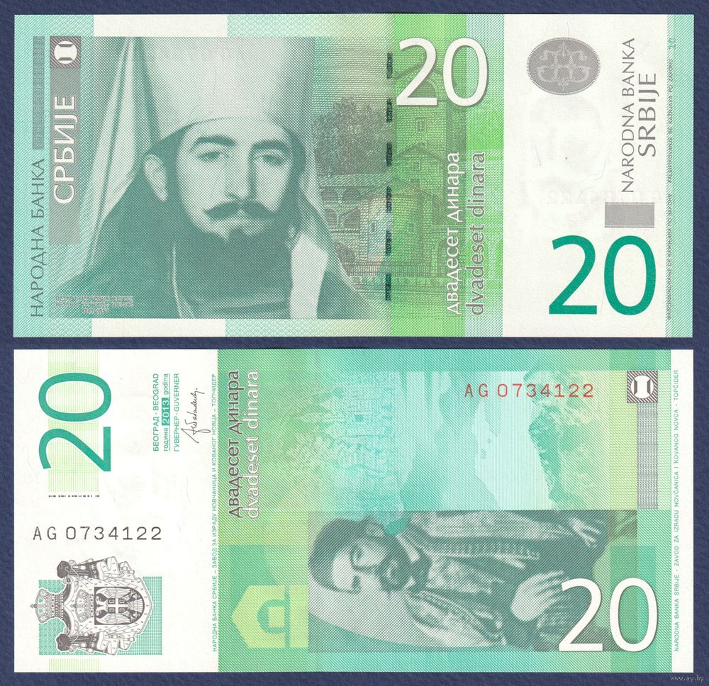 Сербия, 20 динар 2013 г, P-55b (AG, владыка Черногории - Пётр II Петрович), UNC