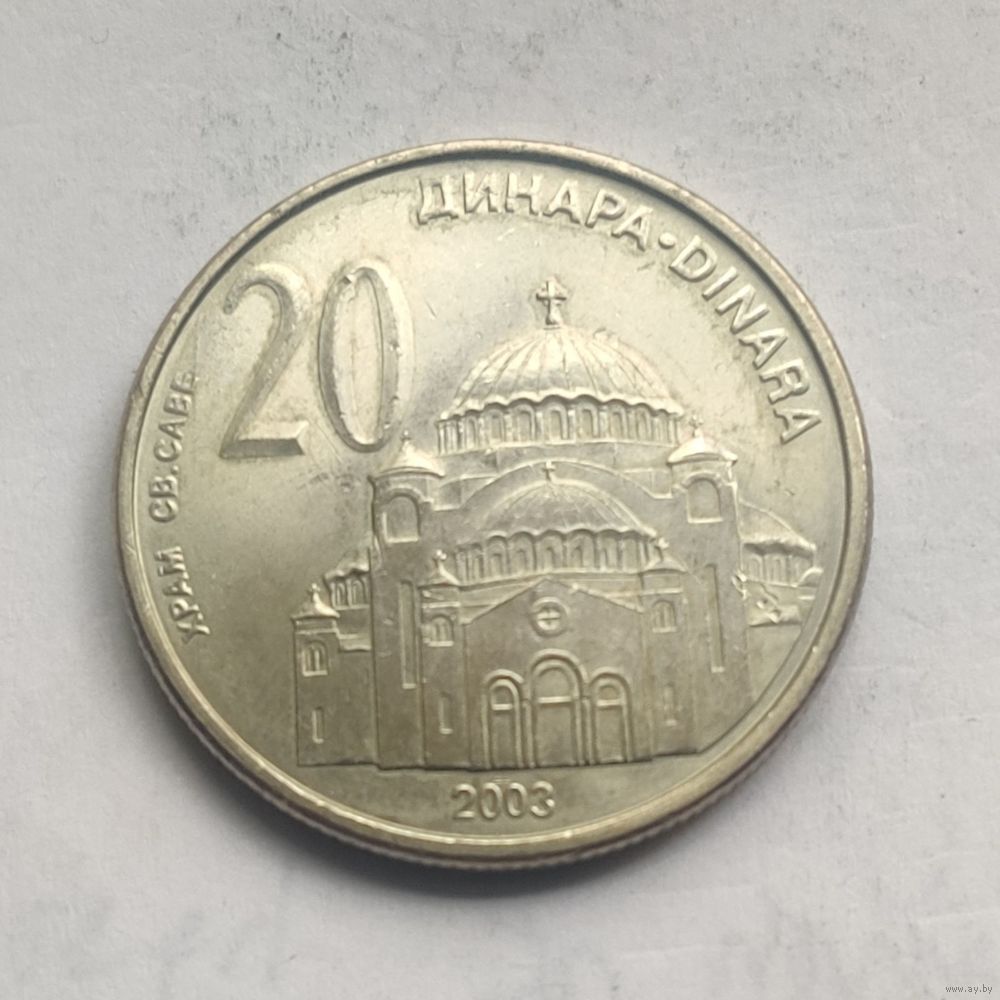 Номер KM # 38 Страна Сербия Период Республика Сербия (2003 - 2024) Валюта Сербский динар Вид чекана Регулярный чекан Номинал 20 динаров Год 2003 Гурт Рубчатый Форма Круг Отношение авс/рев Медальное (0°) МатериалМедь-Цинк-Никель Вес (g) 9 Диаметр (mm) 28 Толщина (mm) 2,1