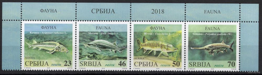 Сербия 2018. Фауна. Рыбы. Сцепка 4 марки (781)