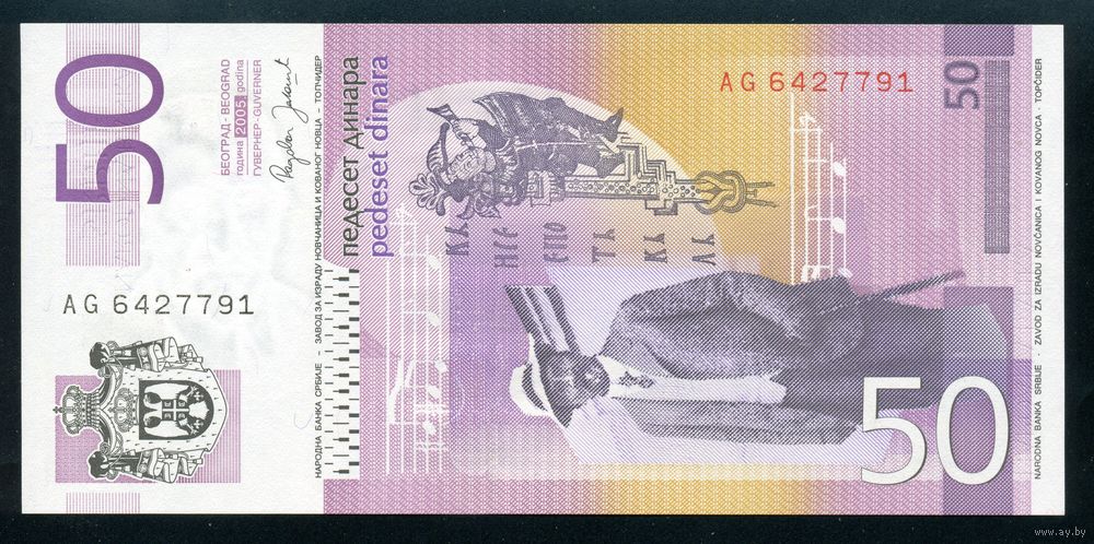 Сербия 50 динар 2005 г. P40a. Серия AG. UNC
