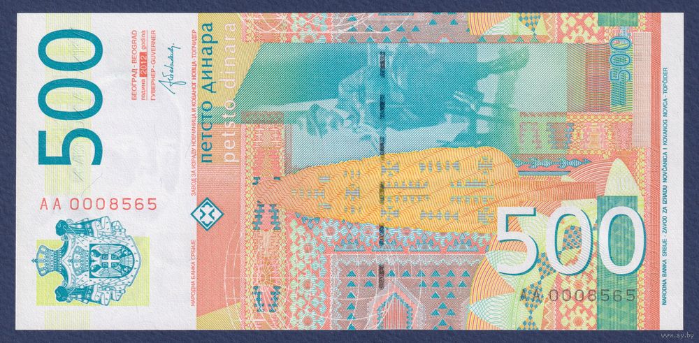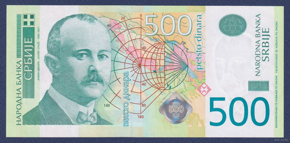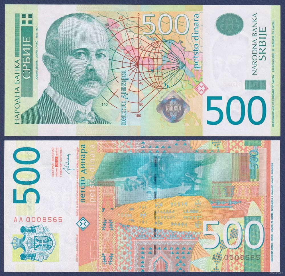 Сербия, 500 динар 2012 г., P-59b (АА, географ Йован Цвийич), UNC