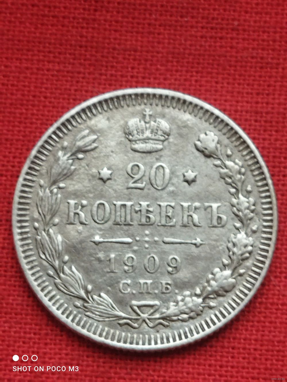 Серебро,20 копеек 1909 год (ЭБ)в Сохране, без Минимальной цены