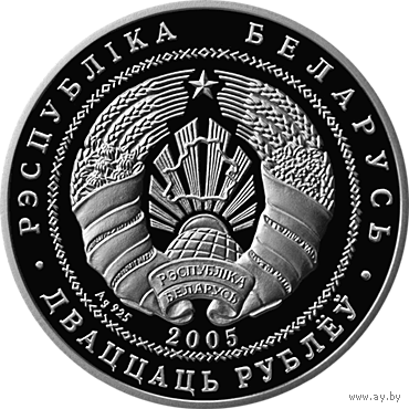 Серебро. Фарны касцёл. Нясвіж ("Фарный костел. Несвиж") Серебро , 20 рублей , 2005 год . Тираж 2000 шт. Архитектура . Храмы . Костелы . Соборы . Мечети . Церкви . Редкость .