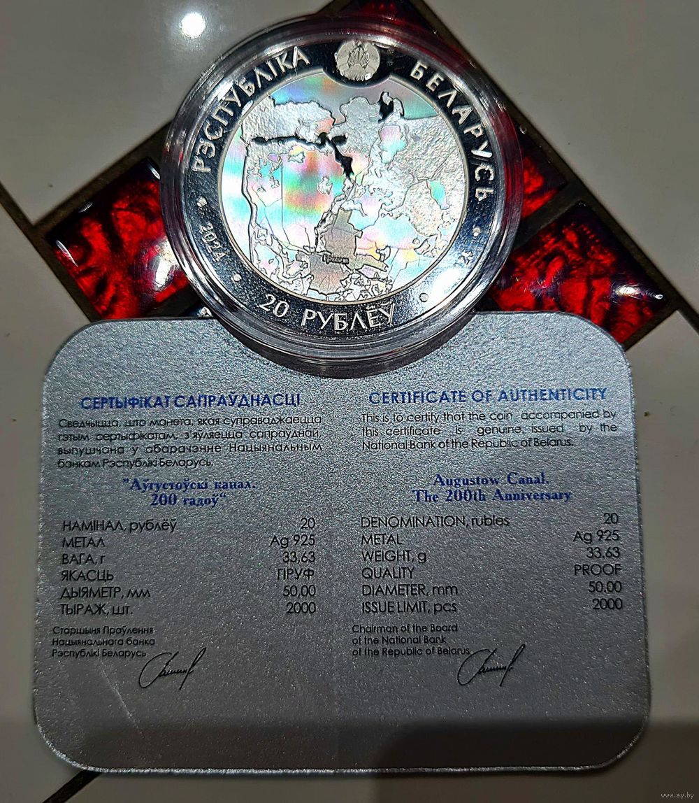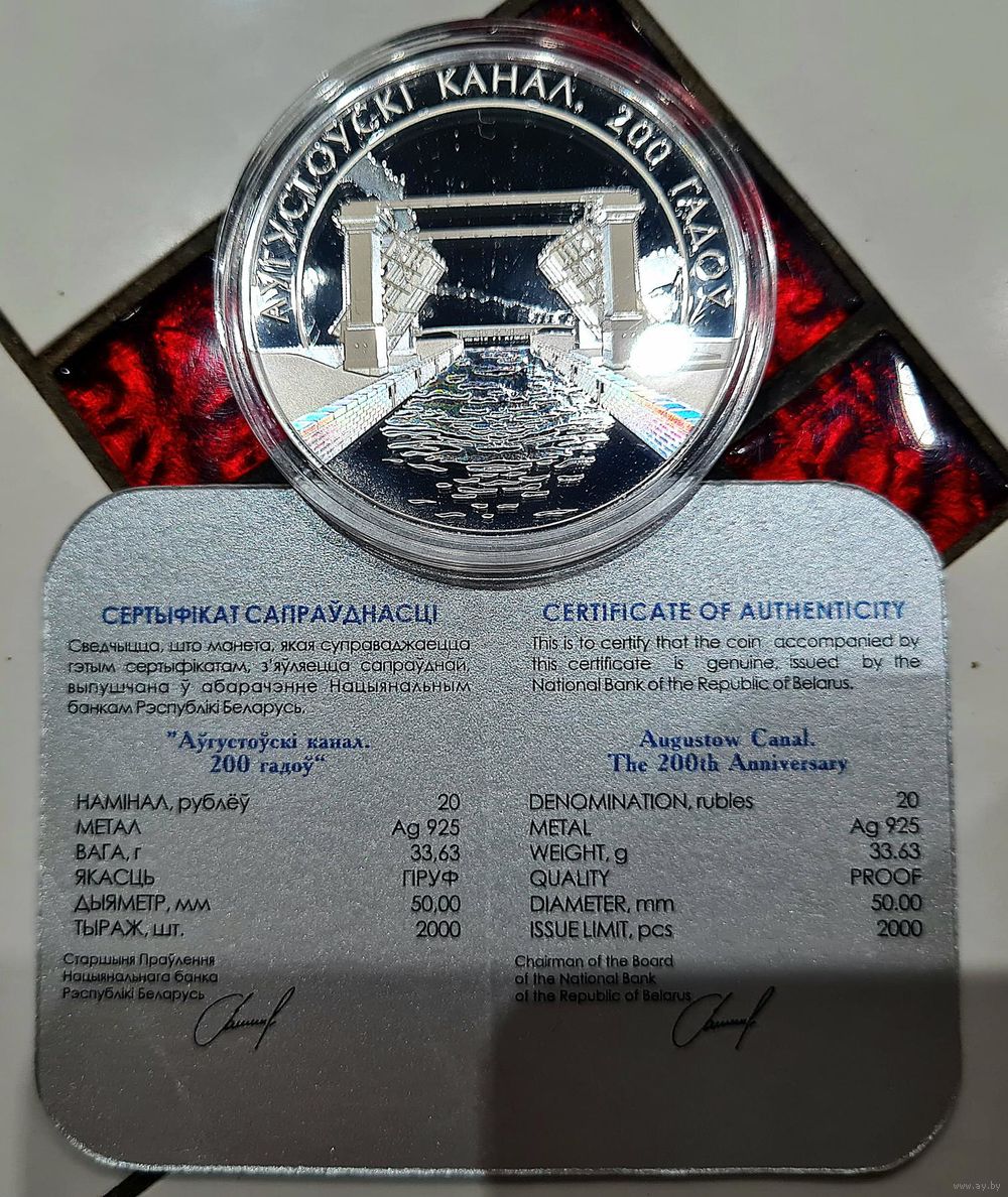 Памятная монета Августовский канал. 200 лет. Серебро 20 рублей.