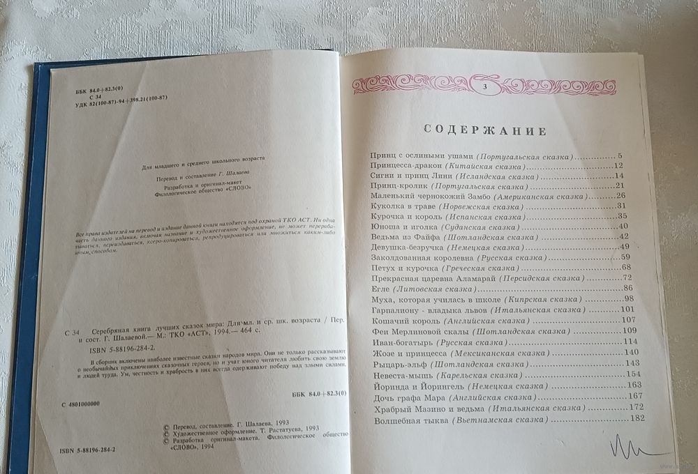 Серебряная книга лучших сказок мира: Для мл. и ср. шк. возраста / Пер. и сост. Г. Шалаевой. М.: ТКО «АСТ», 1994.- 464 с.