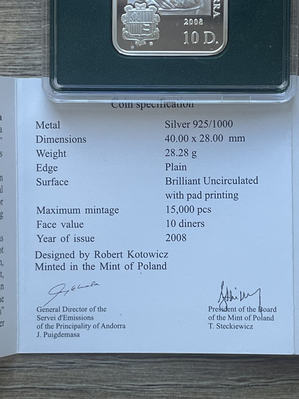 Андорры достоинством 10 динеров 2008 года, посвященная Леонардо да Винчи в серии