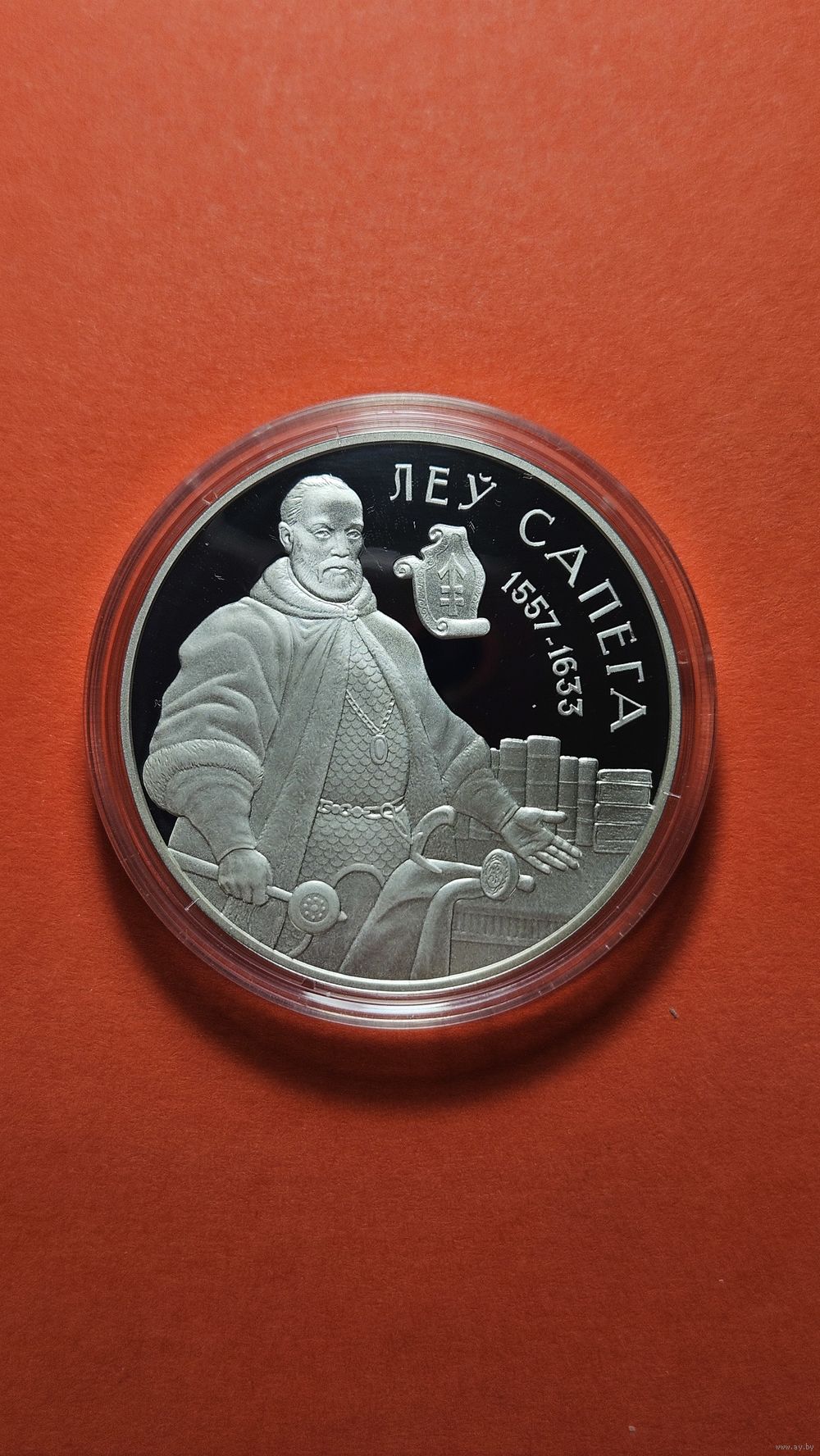Лев Сапега вошел в историю как один из главных составителей и редакторов Статута ВКЛ 1588 года — фактически первой конституции в Европе, закрепившей основы правового государства. Дизайн монеты символически отражает его вклад в юриспруденцию и государственное строительство.