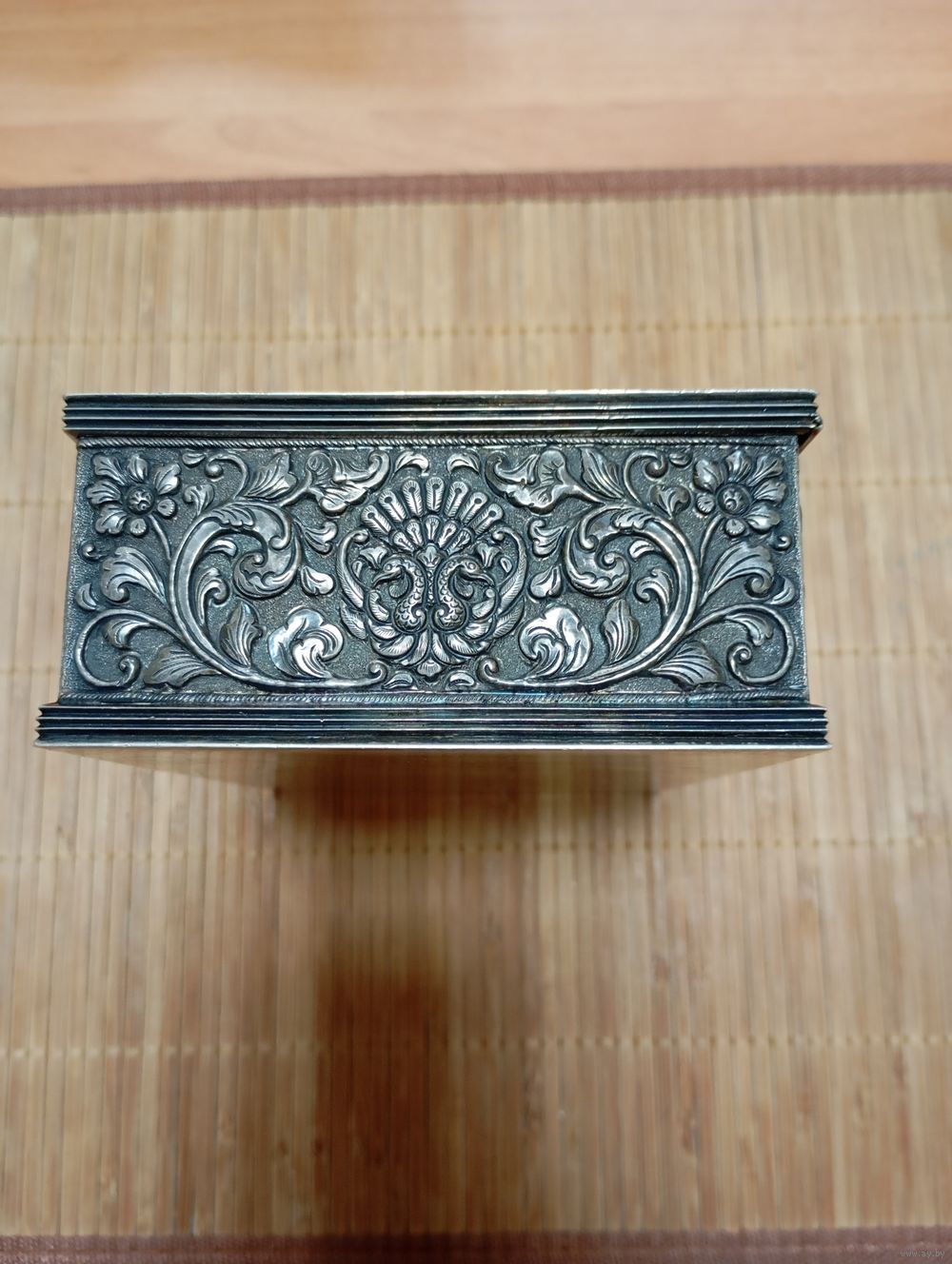 Серебряная шкатулка 800 пробы,в отличном коллекционном состоянии!Индонезия,вес 511,3 грамма!Размеры:157*107*50 мм.Петли исправны,защелкивается плотно,без повреждений!Очень красивый арнамент с павлинами!ВЫХОД НА СВЯЗЬ И ОПЛАТА ЛОТА В ТЕЧЕНИИ 3-Х СУТОК!СО СВОЕЙ СТОРОНЫ ОБЯЗУЮСЬ ОБЕСПЕЧИТЬ НАДЕЖНУЮ УПАКОВКУ И БЫСТРУЮ ОТПРАВКУ!ВСЕ ВОПРОСЫ ЗАДАВАЙТЕ ПЕРЕД ТЕМ КАК СДЕЛАТЬ СТАВКУ,ЛИБО ДО ОКОНЧАНИЯ ТОРГОВ!СТАВКИ НЕ ОТМЕНЯЮ,АУКЦИОН НЕ РАЗГОНЯЮ!ВСЕМ УДАЧИ!!!