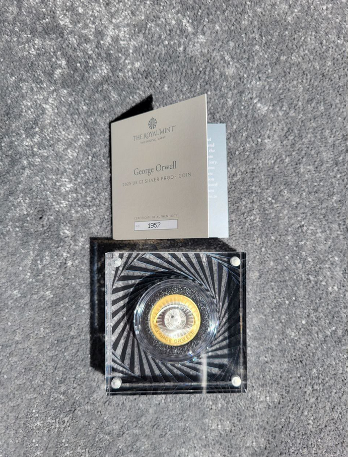 Серебряная монета £2 George Orwell 2025 (Proof) — ИДЕАЛЬНОЕ СОСТОЯНИЕ (MINT CONDITION)
