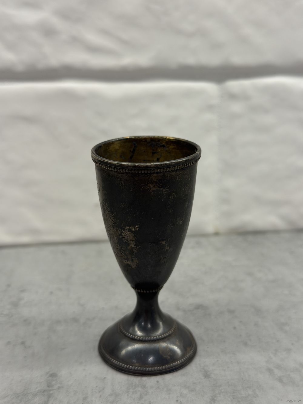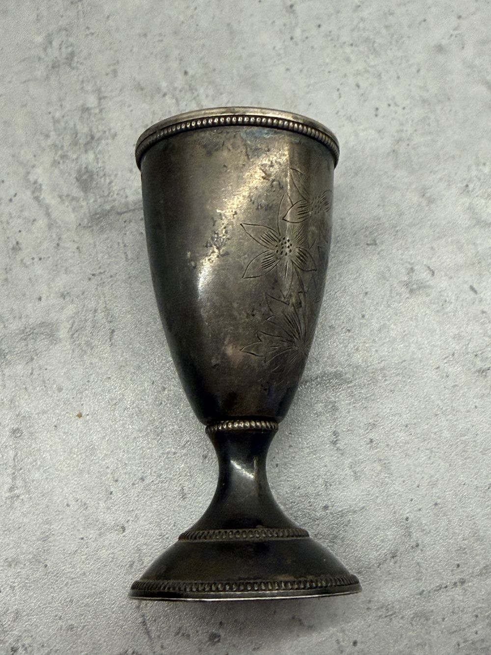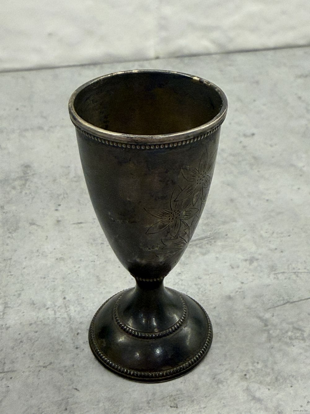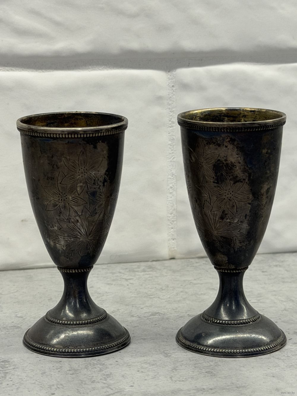 Это пара серебряных стопок (рюмок) с гравировкой, вероятно, 875 пробы, произведенных в СССР.