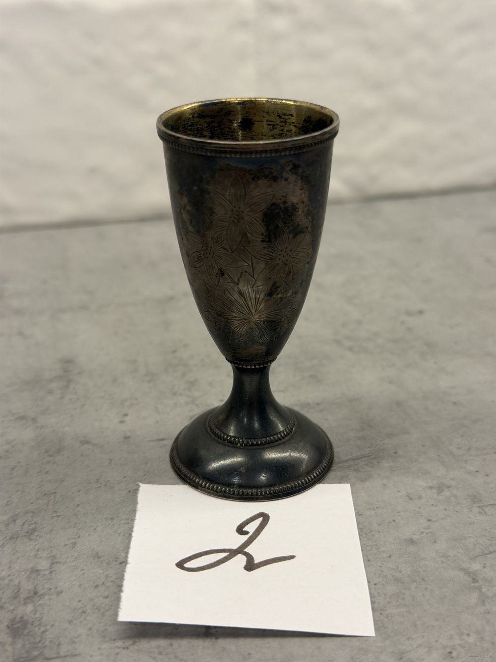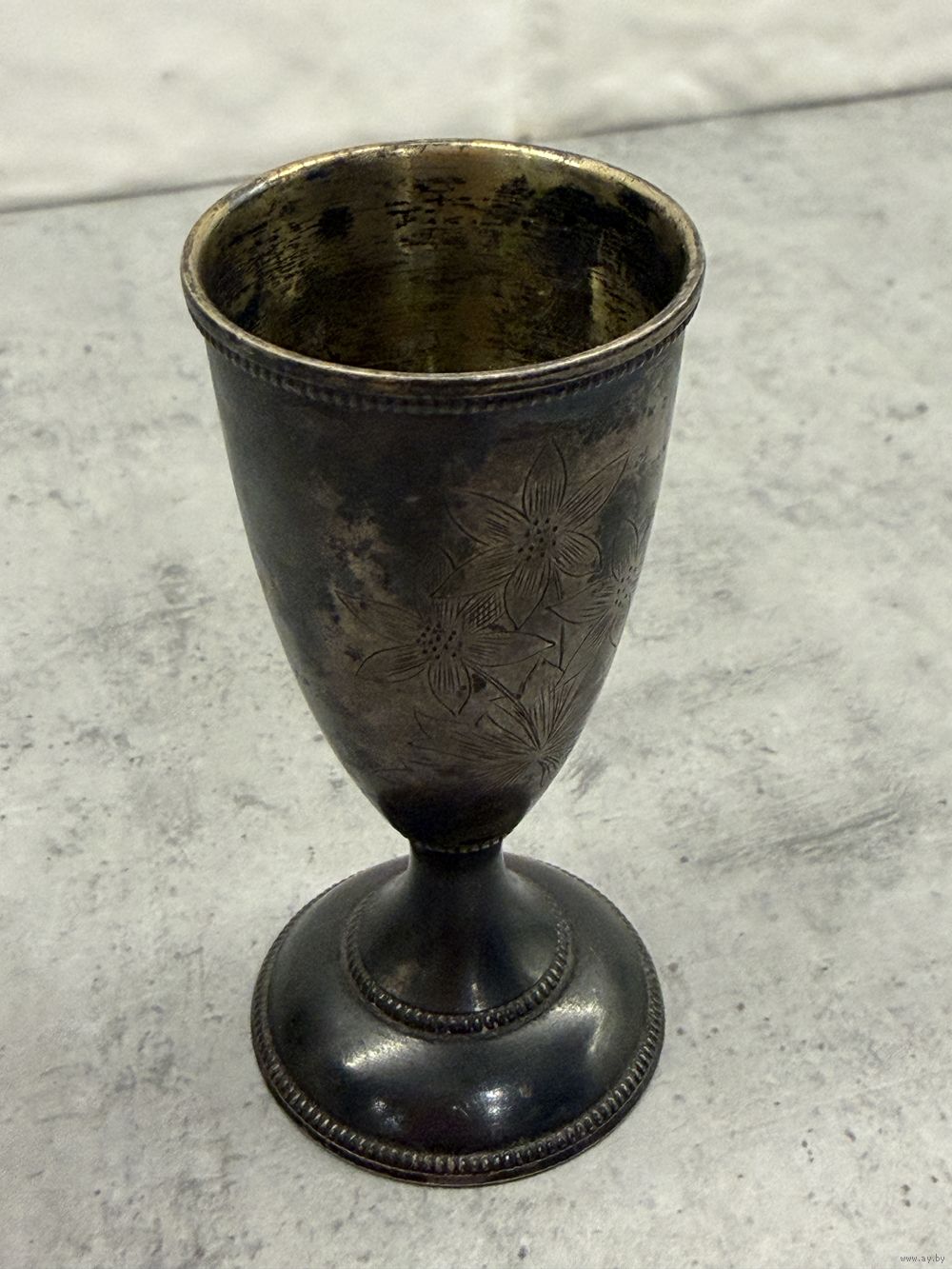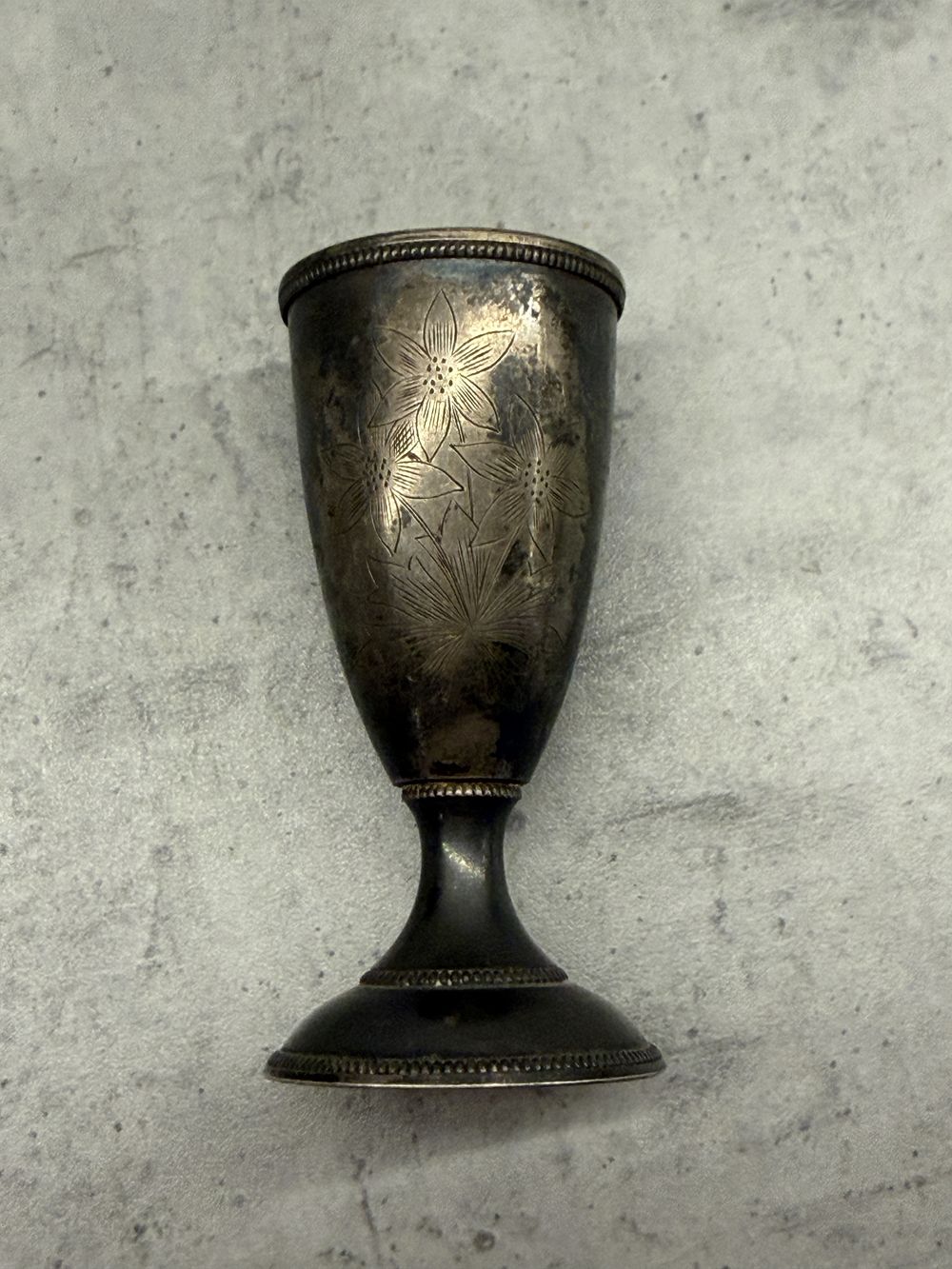 Это пара серебряных стопок (рюмок) с гравировкой, вероятно, 875 пробы, произведенных в СССР.