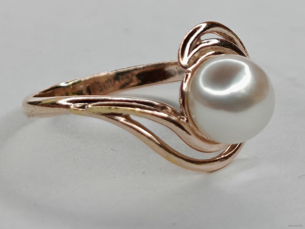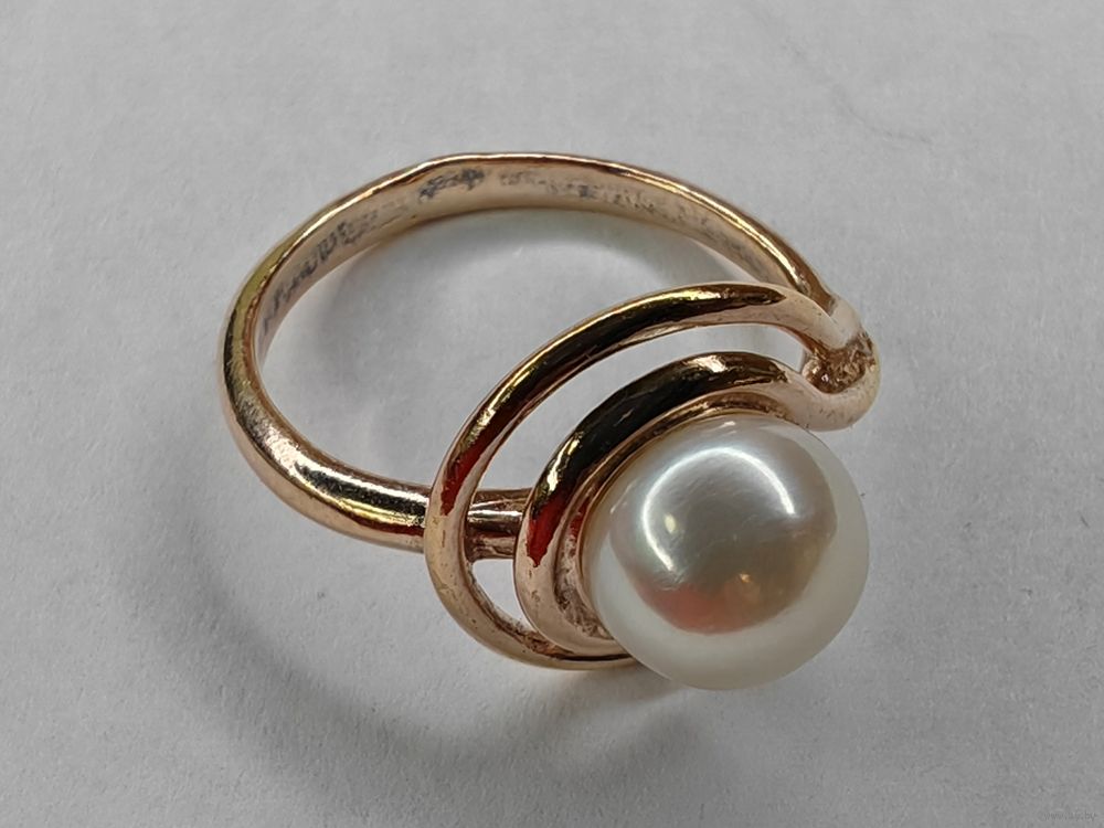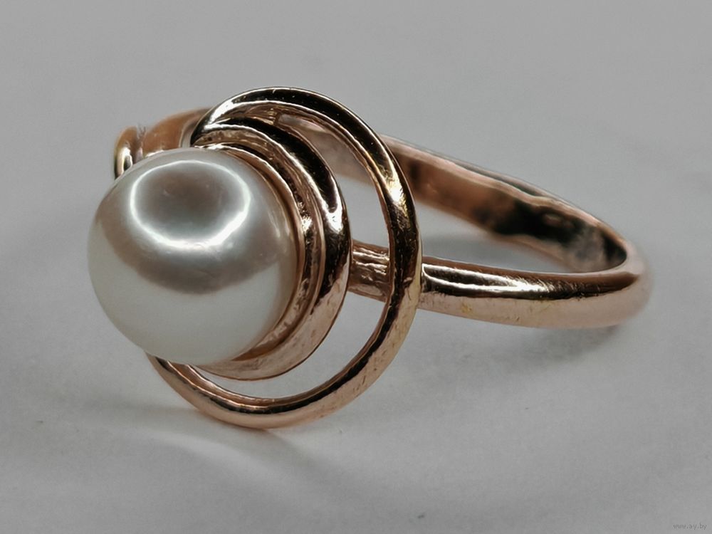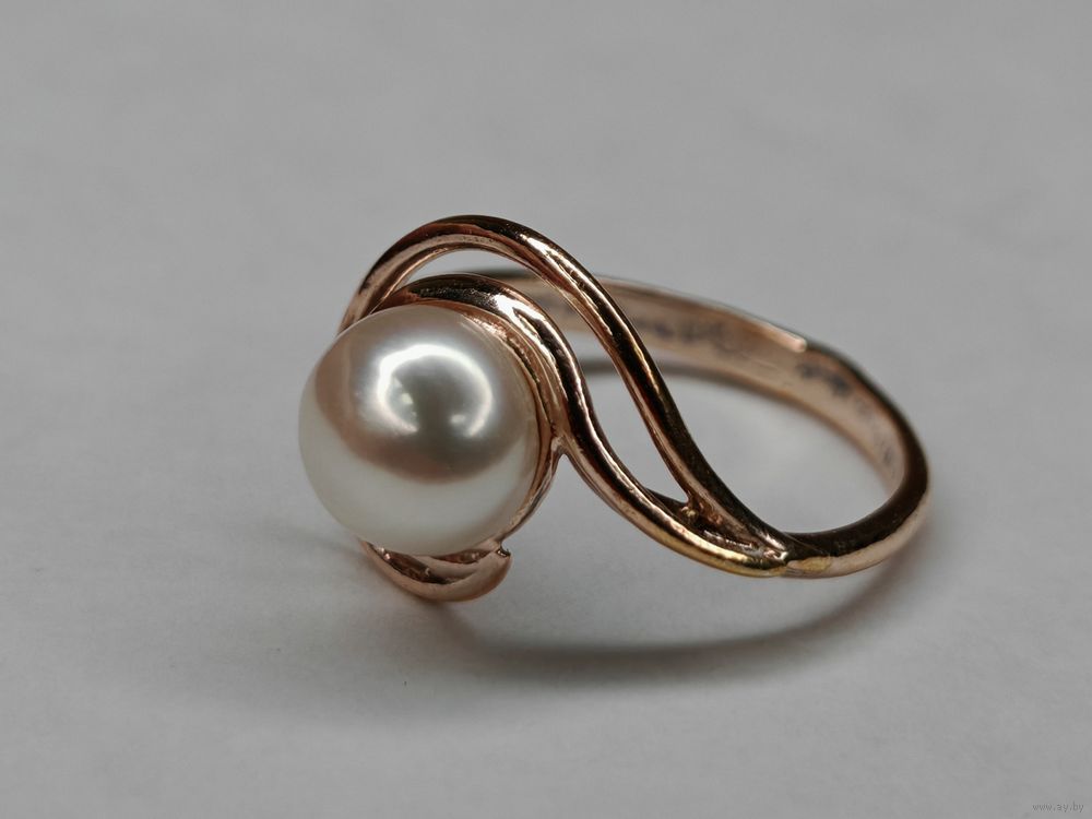 Серебряное кольцо с жемчугом 925 пр. Позолота. Размер 17 мм. С рубля.