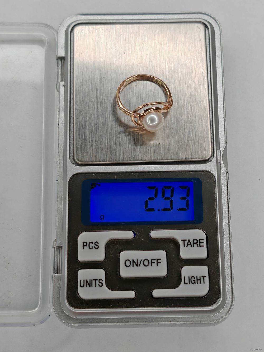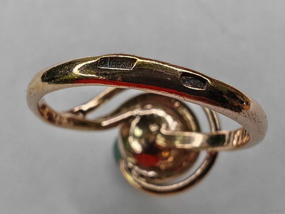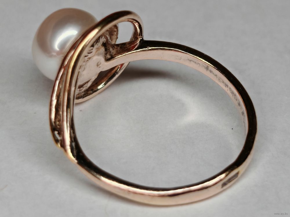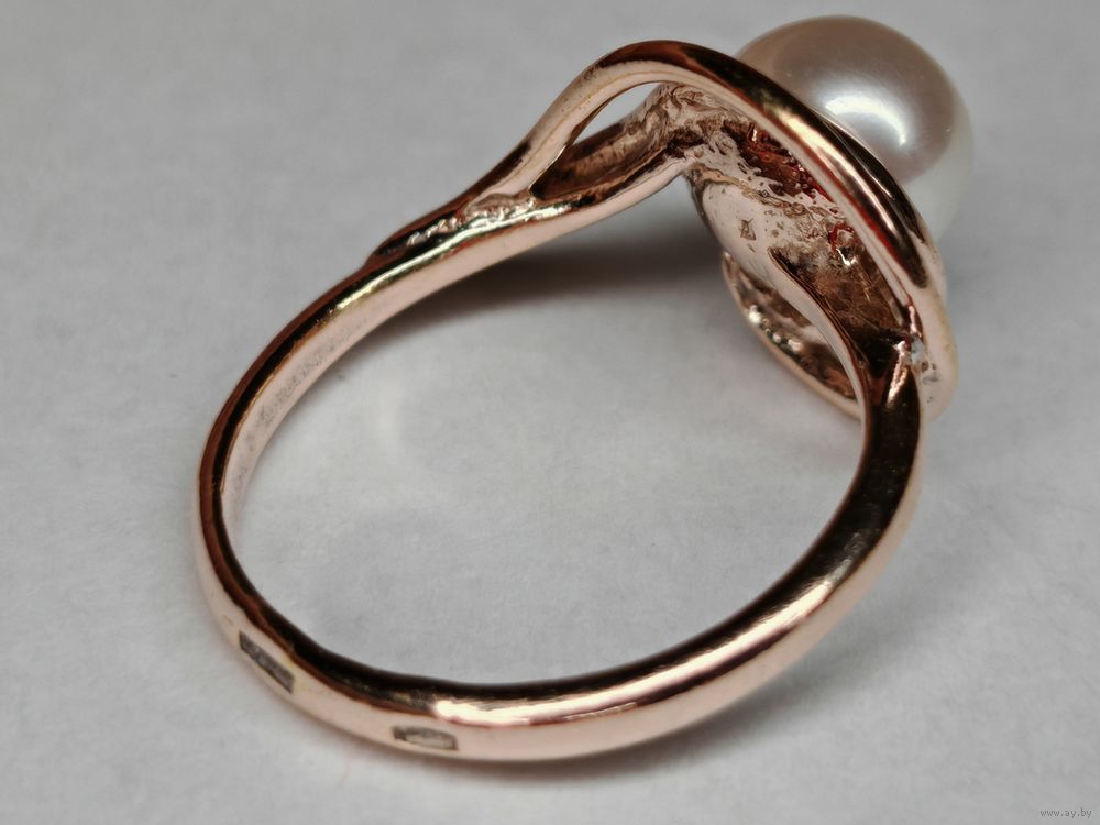 Серебряное кольцо с жемчугом 925 пр. Позолота. Размер 17 мм. С рубля.