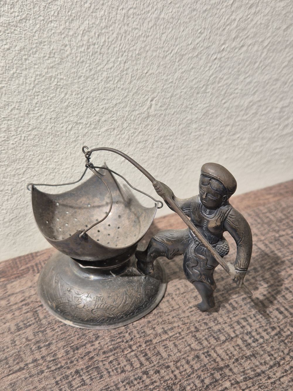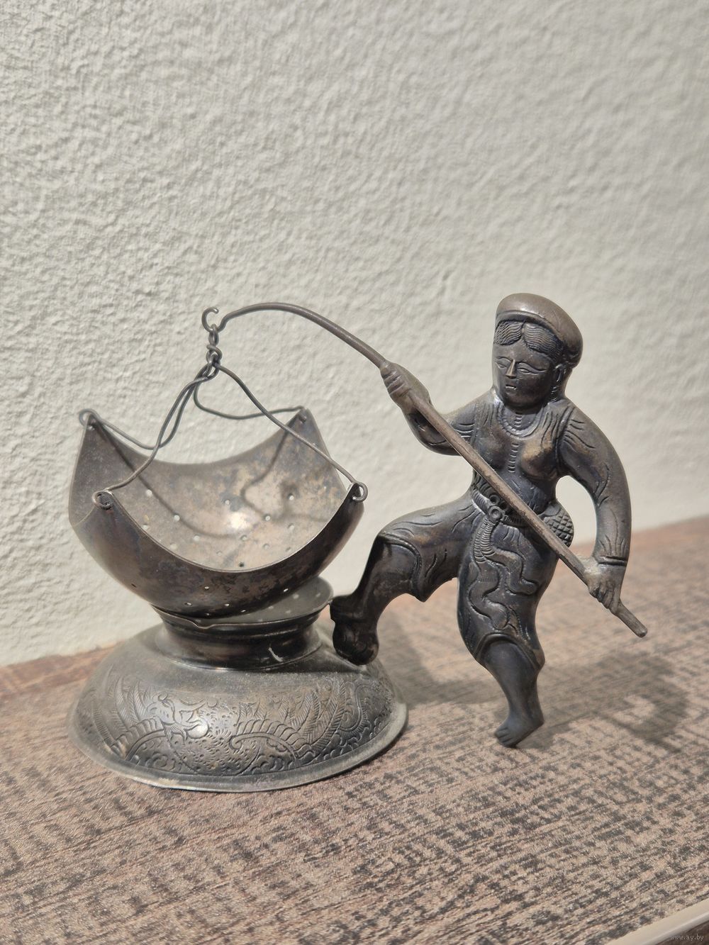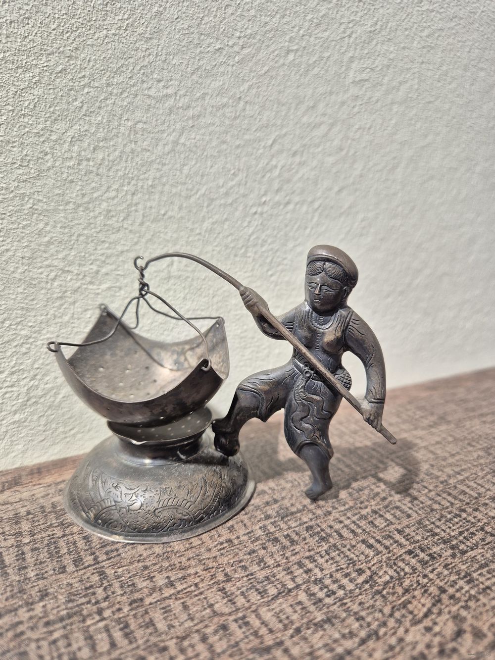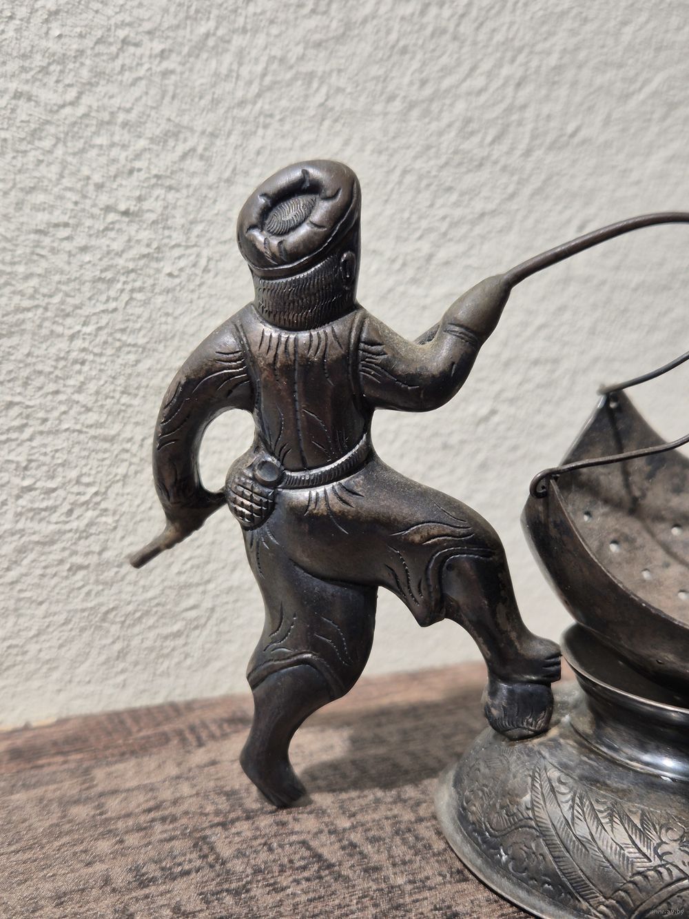 Серебряное вьетнамское Ситечко для чая в виде фигурки рыбака. проба 900
