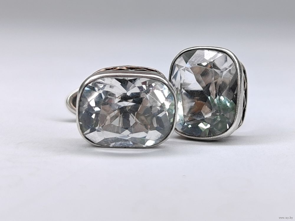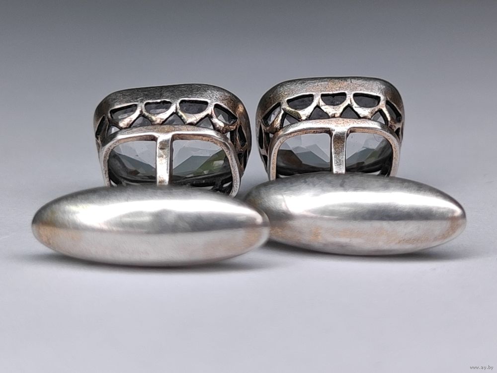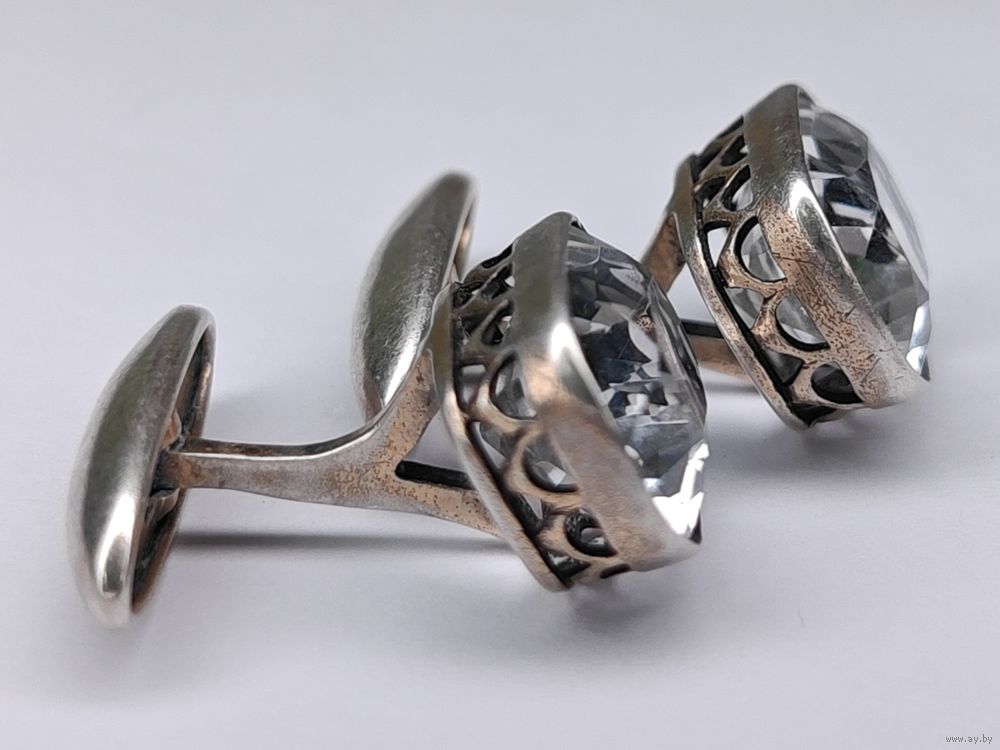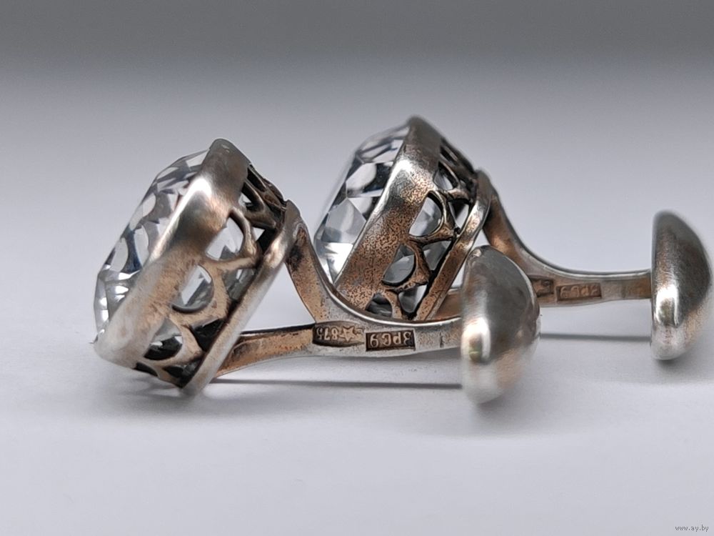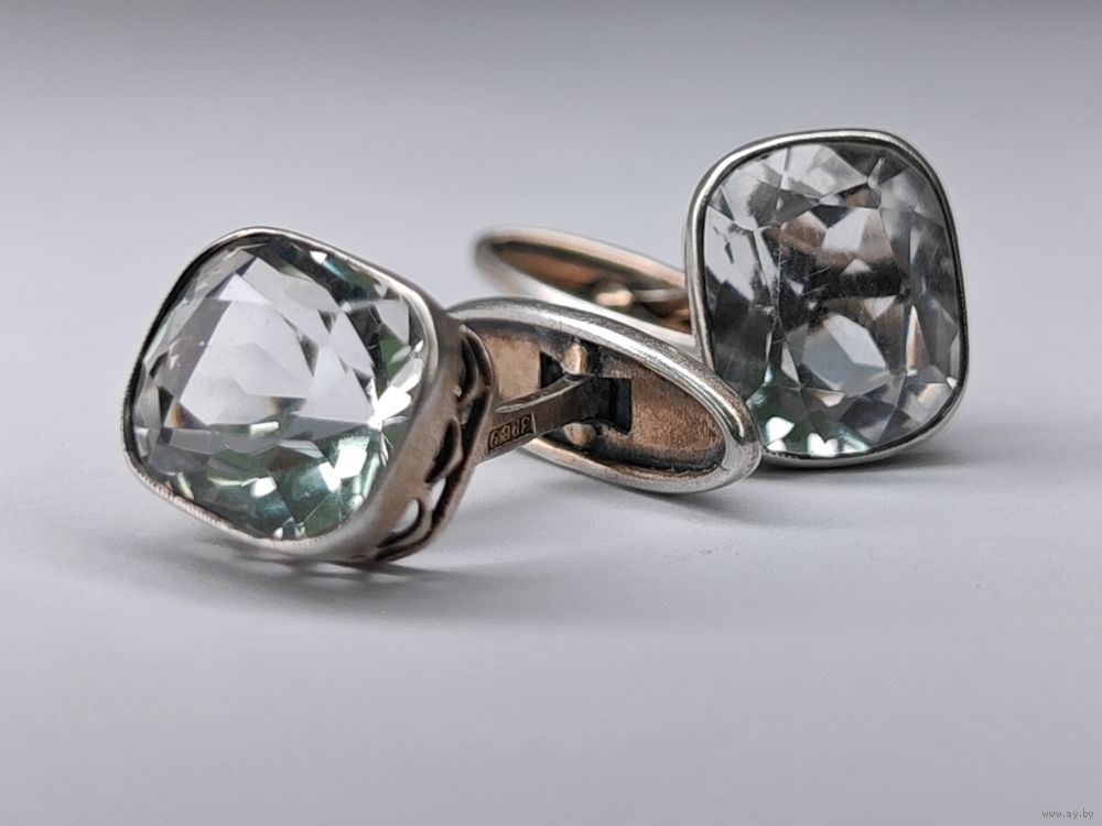 Серебряные запонки 875 пр. Горный хрусталь. СССР.